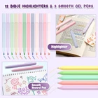Value Set: You will get 12 highlighters, 5 colored pens, 1 large capacity pencil case, 3 color semi-transparent sticky notes (150 sheets), 6 semi-transparent index tabs (1200 sheets), 75 Bible tabs. This bible study supplies is suitable for journal, notepad, work, study notes, bible study. Large Capacity Pencil Case: Our pencil case measures about 9*4.5*1.2in, made from high-quality waterproof material and adopts unique unfold design makes it easy to access all your items a once. It has enough space for you to store various stationery such as pens, pencils, markers, erasers, etc. Smooth Writing Experience: Bible highlighters and pens no bleed made of quality plastic body, they write smoothly, are comfortable to hold, longtime to use, and not prone to leakage, providing a comfortable writing experience. And, the pen has a portable pen clip that can be clipped to a notebook or pocket for easy carrying and storage. Translucent Sticky Notes & Index Tabs: Sticky notes and index tabs are adopts great PET material, which is colorful, waterproof, hard to tear, colorfast. The translucent design will not hide your notes, practical and decorative. Please wait for the note to dry before closing the book.Also, equipped with 75 laminated Bible tabs (66 pre-printed and 9 blank) . Wide Applications: This bible journaling kit is suitable for journal, study, note taking,, writing, planning, bible underling, and can also be widely used in school, home, office, Bible study classes. It is a great present for friends, fathers, mothers, women, men, church youth, and bible lovers.