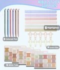 VALUE KIT: Includes 66 Bible Tabs and 9 personalized blank Tabs, 10 Bible Cross Paper Clips, 6 Dual Tip Thick & Thin Highlighter, 6 multi-color pens, and more. PRACTICAL: The Bible Tabs font is large and clear for quick annotations or adding labels; the matching pens and Cross Paper Clips and highlighters won't blot thin Bible pages, making it easy to mark and emphasize Scripture verses. Versatile Use: Beyond your Bible, Cross Paper Clip can be used for organizing documents, keeping notes together, or as a meaningful accessory for personal or office use. All-in-One Kit: Bible Study Supplies Helps you enhance your Bible study experience. Featuring a variety of themed tools, colorful accessories, and more, it meets your Bible study needs all at once. UNIQUE GIFT: The Bible Jurnaling Kit is beautifully packaged with a unique theme, making it an ideal Christian gift for Bible study groups, church youth and Bible lovers.