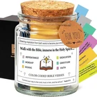 This apothecary jar is filled with a collection of 90 Bible verses for daily inspiration. The jar is made of clear glass and comes with a lid to keep the verses safe. It measures less than 6 inches in height and less than 5 inches in length, with a width of 10 inches. The set includes only one jar and no assembly is required. This decorative accessory is perfect for home décor and can be placed in any room to add a touch of inspiration. Use it to pick a random verse each day or give it as a thoughtful gift to a friend or loved one. The jar falls under the categories of Boxes, Jars & Tins, Decorative Accessories, Home Décor, and Home & Garden.
