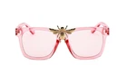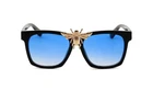 Product information: Specification: Conventional Glasses structure: Frame Lens material: AC Style: Exquisite Frame material: Plastic Anti-UV grade: UV400 Style: New Visible light perspective rate: 99 (%) Frame color: #1 bright black full gray film, #2 bright black and blue film, #3 tea color double tea film, #4 leopard double tea film, #5 green, #6 pink Big bee decoration sunglasses, trendy big square sunglasses, fashion glasses