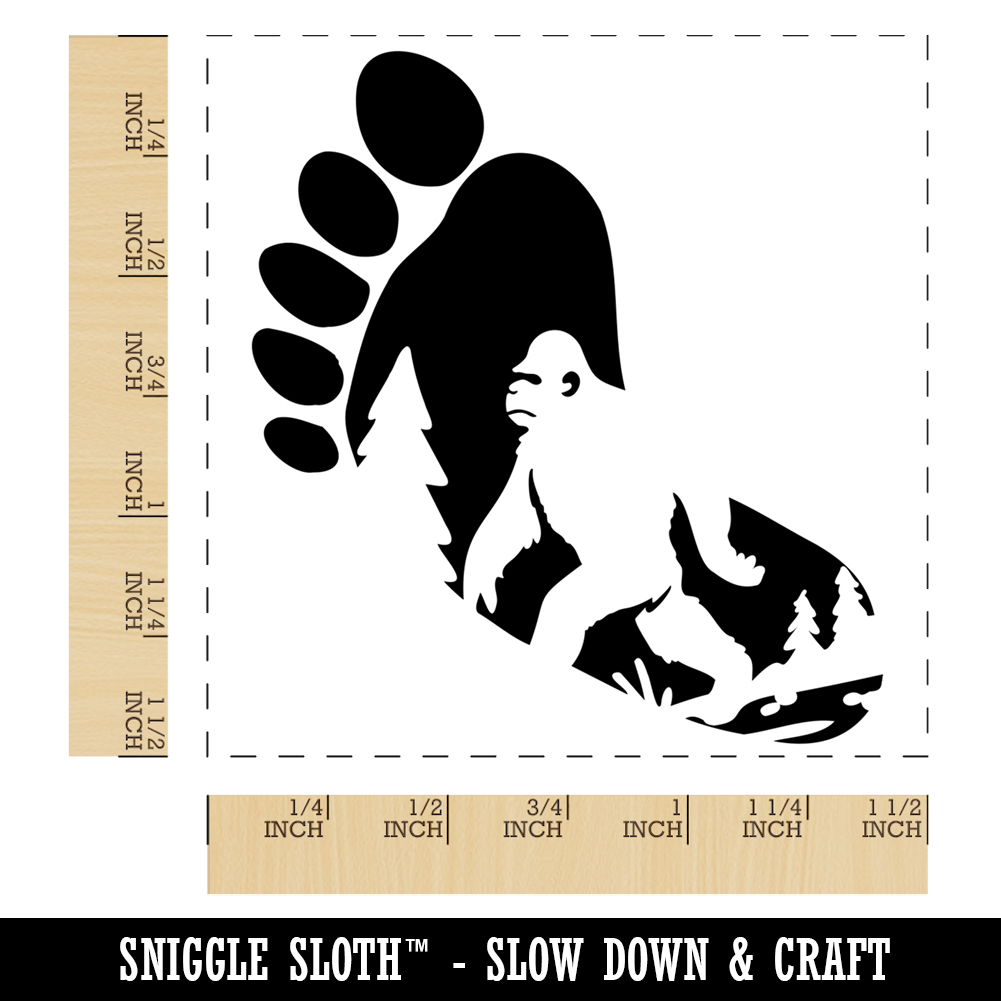 Bigfoot Sasquatch Silhouette in Footprint Self-Inking Rubber Stamp Ink Stamper