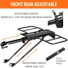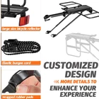 【Anodized Aluminum Frame】The bike cargo rack is made of high strength anodized aluminum alloy,joined with stainless steel screws and anti-loosening nuts ensure the bike rack will not go loose on rough road or get rusty after light rains! 【Foldable wide wings】The folding side open up a lot of options, give you plenty of places to tie loads to, and will easy load 165lb.Especially if you regularly have to strap down odd sized loads,this rear bike rack will fit you perfectly. 【Large Load-Bearing】Our touring carrier racks is lightweight but strong and sturdy enough for bearing up to 165lbs,provide you with extra security and strength for long-distance ride,great for cycling enthusiasts!The bike Rear rack and the bicycle form a firm and stable triangular shape,which effectively enhances the stability and makes it carry more weight than most bicycle carrier on the market! 【Adjustable Structure】There are many parts of the bicycle carrier rack are adjustable to fit 24" to 29" bike frames!The top panel is adjustable from 15.7"-23.6" in length;the telescopic side support rods can be stretched from 11.8"-15.7".The adjustable structure allows you adjust the length and height of the bicycle luggage rack as you needed to fit most of bicycles. 【Nothing Will Go Wrong】We provide quick-release wrenches in two different sizes for the saddle tube, as well as clips available in two varying sizes for the bottom frame.We are confident that these will be a perfect fit for the bike. 【Bonus Gift】Our bicycle luggage carrier rack comes with a high-strength elastic rope,which can cover around your baggage,parcels and luggage for extra security while riding on rougher road! Equipped with large size red rear reflector to increase visibility on the night cycling to ensure your safety while riding at night or on a rainy day!