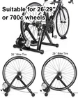 【Indoor Bike Trainers】: One of the problems with cycling, though, is that when the weather gets bad, conditions can keep you off the road or trail. Maybe it is raining or is too windy outside, or perhaps you need to avoid rush hour traffic or an unsafe dusk ride. This is when you just mount your bike on to a bike trainer and get the exercise that you want, but at home. There is no reason why you can not exercise with your bike when the outside weather is bad. 【Strong Structure & High Load-bearing Capacity】: The unfolded bicycle training stand forms a pyramid structure, which greatly improves the stability of the entire frame. Its strong material and stable structure enable it to withstand a weight of 330 pounds. In addition, any bicycle with a wheel diameter of 26 ''to 29'' including 700c can be fitted to our stand. 【6 Level Resistance Adjustable】: The trainer includes a drive-by-wire device so that you can change the resistance from your handle bars directly. You can adjust the magnetic resistor and switch the six resistance levels in seconds to meet your requirements about resistance and speed. 【Smooth & Low Noise Operation】: There is almost no sound on the wheels on the riding platform. It is recommended to replace smooth tires during cycling training to reduce vibration, reduce indoor resonance or add carpet under the stage. In some cases it will be loud with MTB tires. If you owned a MTB with rough tires, careful to buy. Because MTB tires will be loud with all bike trainers, no matter how expensive it is. 【Portable Folding Bike Exercise Stand】: In order to facilitate users to carry and store our bicycle training rack, we designed it into a folding style. It just takes a minute to set it up, clamp your rear axle with the quick clamp and adjust the contact between the wheel and the polished roller. No need to use other tools, you can directly complete the installation and disassembly process by putting up or unfolding the stand.