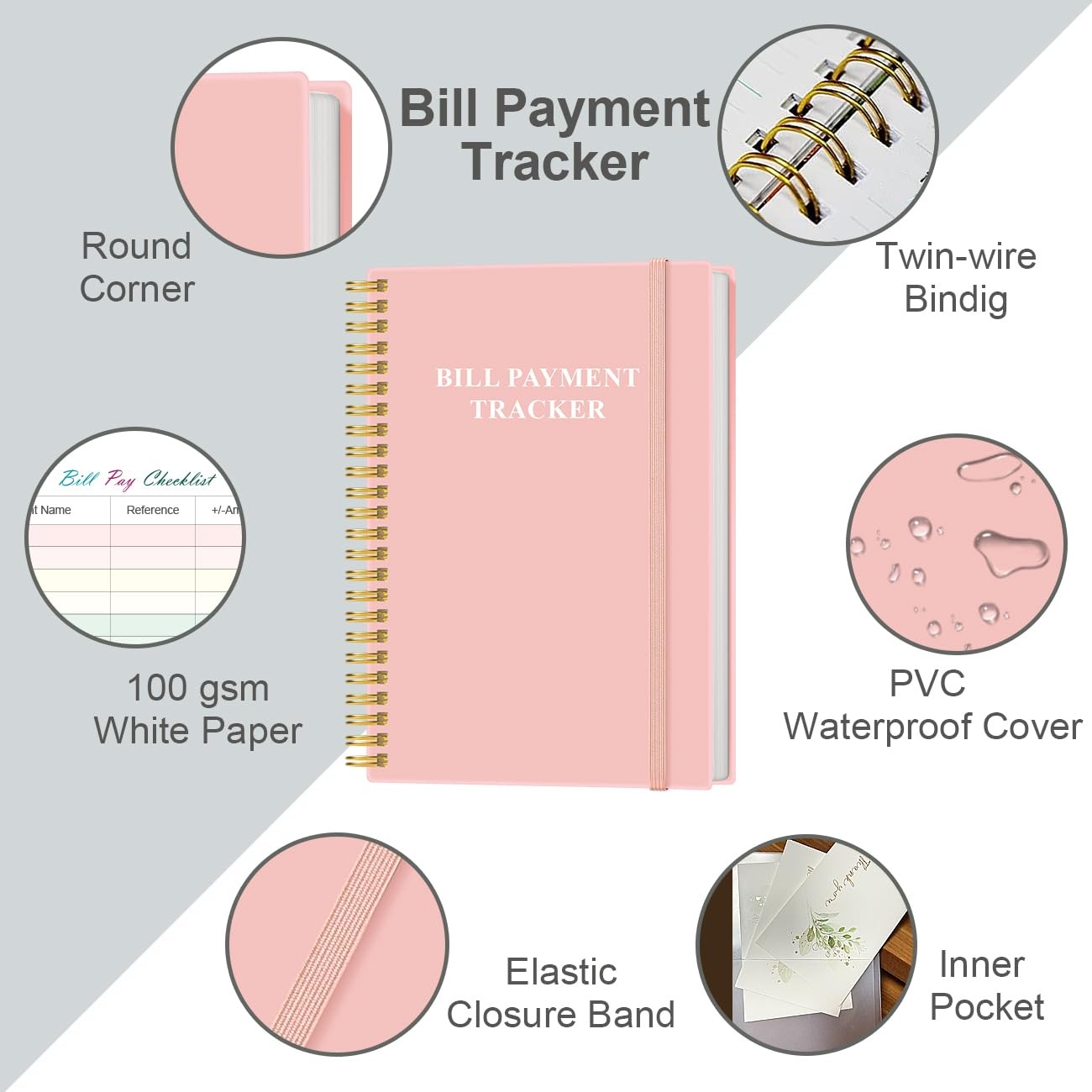 Bill Payment Checklist - Monthly Organizer & Planner 5.8" x 8.5", A.Pink Description This monthly bill payment tracker notebooks size of 5.8" x 8.5", This bill payment organizer is designed to help you stay on top of your financial responsibilities by providing dedicated sections to track bills, payments, due dates, amounts. Bill payment tracker monthly organizer is used to high quality 100gsm pure white paper, elastic band and a back pocket for extra space. it comes with 3680 entry lines (29 lines per page), make sure you have enough space to take control of your finances. Features: EASY TO MANAGE - The bill payment tracker notebook is designed to help you stay on top of your financial responsibilities by providing dedicated sections to track bills, payments, due dates, amounts. UNIQUE DESIGN - Monthly bill payment tracker inner paper is colorful, This bill payment organizer will help you to track your bill payments through last years. Great for small business owners, personal use or for family expense tracking. MANAGE YOUR FINANCES & SUCCEED - Use this bill payment tracker is perfect for your small business or your personal finance, You will be able to easily analyze your financial activities and quickly prepare accurate financial statements. HIGH QUALITY - The colorful bill payment tracker spiral notebook size of 5.8" x 8.5", just the perfectly size to fit in your backpack, purse or laptop case. Bill payment tracker monthly organizer is used to high quality 100gsm pure white paper, elastic band and a back pocket for extra space. it comes with 3680 entry lines (29 lines per page), make sure you have enough space to take control of your finances. PERFECT FOR - Use monthly bill payment log book for your personal or business finances, improve your productivity with this budget organizer. Product Details: Handling We will ship all orders within 1 business day of payment. Delivery We Do Not Ship Outside of the Continental US. Return Policy All items qualify for returns within 30 days of receipt. Buyer is responsible for return shipping on any item that is not damaged. Feedback We take our reputation seriously, we buy and sell online, so we understand the value of trust. If you are unsatisfied with your order, please contact us and we will work with you to resolve it to your satisfaction.
