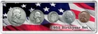 Celebrate a special year of birth with this attractive set that will forever commemorate that momentous beginning. Each set contains a cent, nickel, dime, quarter and half dollar of your selected year. As each coin is unique in its own way, the appearance of the coins received may differ slightly from those pictured. Great care is given to the selection of quality coins for each set. Dimensions: 6'' x 2'' x .25'' This Birth Year Gift Set comes housed in a lovely Gift Box with its Certificate of Authenticity.