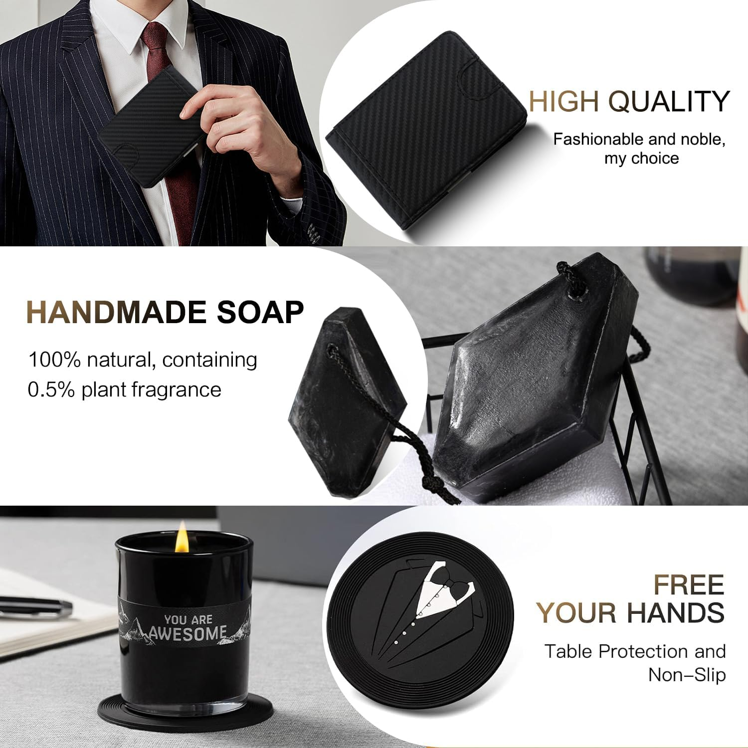 Store New Arrivals Add to Favorite View Feedback Contact Fast deliveries to the customer's home Quality customer service John Make the customers happy! Birthday Gifts for Men Who Have Everything, 8 Pcs Premium Gift Baskets for Men,Birthday Gift Basket for Him Gifts for Dad, Boyfriend, Husband, Brother, Gift Sets for Father'S Day, Valentine'S Day Description 🎁【Birthday Gift Box for Men】🎁The birthday Gift Box is designed with a modern and elegant touch. This is a ideas and unique birthday gift basket set. Everything is carefully selected and practical, so that the special man in your life can feel cherished and loved by you. It contains most of the gifts that men like. It is a best gifts for men for men, dads, husbands, boyfriends, grandfathers, best friends, colleagues, sons, brothers. ✅【 Gift Set for Men 8 Piece】✅Our mens birthday gifts set has 8 unique gifts for men, contains the following items: 1*20oz car cup, 1*PU leather wallet, 1*car aromatherapy, 1*teak tobacco candle, 1*natural handmade soap, 1*PVC soft rubber coaster, 1*multi-function keychain, high-end black gift box for men. Surprise him with our men birthday gift ideas and give him a happy birthday gift. 🍺【Insulated Vacuum Tumbler】🍺Made of 304 food-grade sturdy stainless steel, with double-walled vacuum insulation, this sweat-free 20oz insulated tumbler with lid can preserve beverage temperature up to 24h for cold & 12h for hot, perfect for enjoying drinks at home, office, picnics, hiking, fishing, etc. 💖【Gifts for Men Who Have Everything】💖Scented candles made with soy wax and teakwood essential oil create a peaceful atmosphere for a relaxing atmosphere, Elevate his driving experience with a portable car diffuser, offering a refreshing aroma during his daily commute or road trips.Indulge his senses with artisanal handcrafted soaps, crafted with care for a luxurious bathing experience. ✨【Best Gifts for Men for Any Occasion】✨This gift basket for men is the perfect gift for any celebration. Give it on birthdays gift, Father's Day gift, anniversaries gift, Christmas gift, Valentine's Day gift, graduations gift, Thanksgiving gift, retirement gift and housewarming gift! This unique gifts for men is sure to amaze them. Product description Value Birthday Box For Men We are committed to curating the perfect gifting experience for you and your loved ones. Leveraging our expertise in the art of gifting, we meticulously select each item to ensure that every gift embodies true craftsmanship. High Quality Gifts Package Discover a meticulously designed world of gift boxes, overflowing with expressions of love, gratitude, and celebration. Whether it's a birthday, anniversary, holiday, or any special occasion, we offer exquisite gift choices that leave an eternal impression. 5.6oz Soy Aromatherapy Candles Light the scented candle and enjoy the rich aroma of teak tobacco, a unique scent that perfectly blends with modern men's tastes and is perfectly suited to creating the ambiance of any space, whether it's your living room, bedroom, or office. 20oz Stainless Steel Tumbler Stainless Steel Tumbler Cups are made of Food-Grade 304 stainless steel and the lid is made of BPA-Free materials. Which is non-toxic and healthy. Whether he's playing outdoors or working in the office, he'll have water at his fingertips and be reminded of your care. Men's cleaning soap The Cotton Milk Scented Soap in the set enables you to let go of the tiredness after a long day's work and feel rejuvenated with the pleasure of the Cotton Milk aroma in your bathroom. Car Freshener Vent Clip Fresh Designed for convenience, our Car Air Freshener is easy to install and fits seamlessly onto any car air vent, ensuring optimal fragrance dispersion. Treat yourself or surprise loved ones with this enchanting car accessory. It makes the perfect gift for any occasion. All-purpose coasters Wine coasters have a premium cozy and minimalist look, not only are they great decorations but also very practical and super functional. It is ideal for coffee cups, wine glasses, mugs, beer bottles, small flower pots, small plants; they also reduce the noise made by cups and mugs; Always a Great Gift Made of PU cortex, contains metal clips, which can prevent important items from falling out of the wallet.Large capacity yet compact design - Smart allocation of space to keep you organized. Unique Birthday Gifts For Him Our passion for gifting goes beyond the products. We believe that gifting is an expression of love and connection. Memorable Gifts For Any Occasions Whether it's for a recently birthday or soon to be man birthday party, our birthday gift box including everything in the box is your perfect idea, it's a special gift box for men which is perfect for birthday, wedding, anniversary, Valentine's Day, Christmas, fathers day gifts and more. Item model number 11 Batteries required No Product Dimensions 7.8 x 7.8 x 4.2 inches Item Weight 2.46 pounds Skin type All ABOUT US We offer the best prices around on high quality products. Our E-store includes media such as books, movies, music and games while offering electronics, toys, sporting apparel, clothing, tools, general home, garden items and more. SHIPPING We are always working hard to ensure your package arrives as soon as possible. Please understand that some factors like weather, high postal traffic, and the performance of shipping companies are outside of our control. We offer free shipping to the lower 48 states and ship within 2 business days of payment, usually sooner. We do not accept P.O. Boxes. Please provide a physical address. For shipping outside of the continental USA, we only use eBay's Global Shipping Program. The item is shipped to KY and then sent to the rest of the world. International customers are responsible for all duties and taxes. Continue to 'check out' to calculate costs for shipping the item to your country. Messages regarding eBay's Global Shipping Program MUST be directe