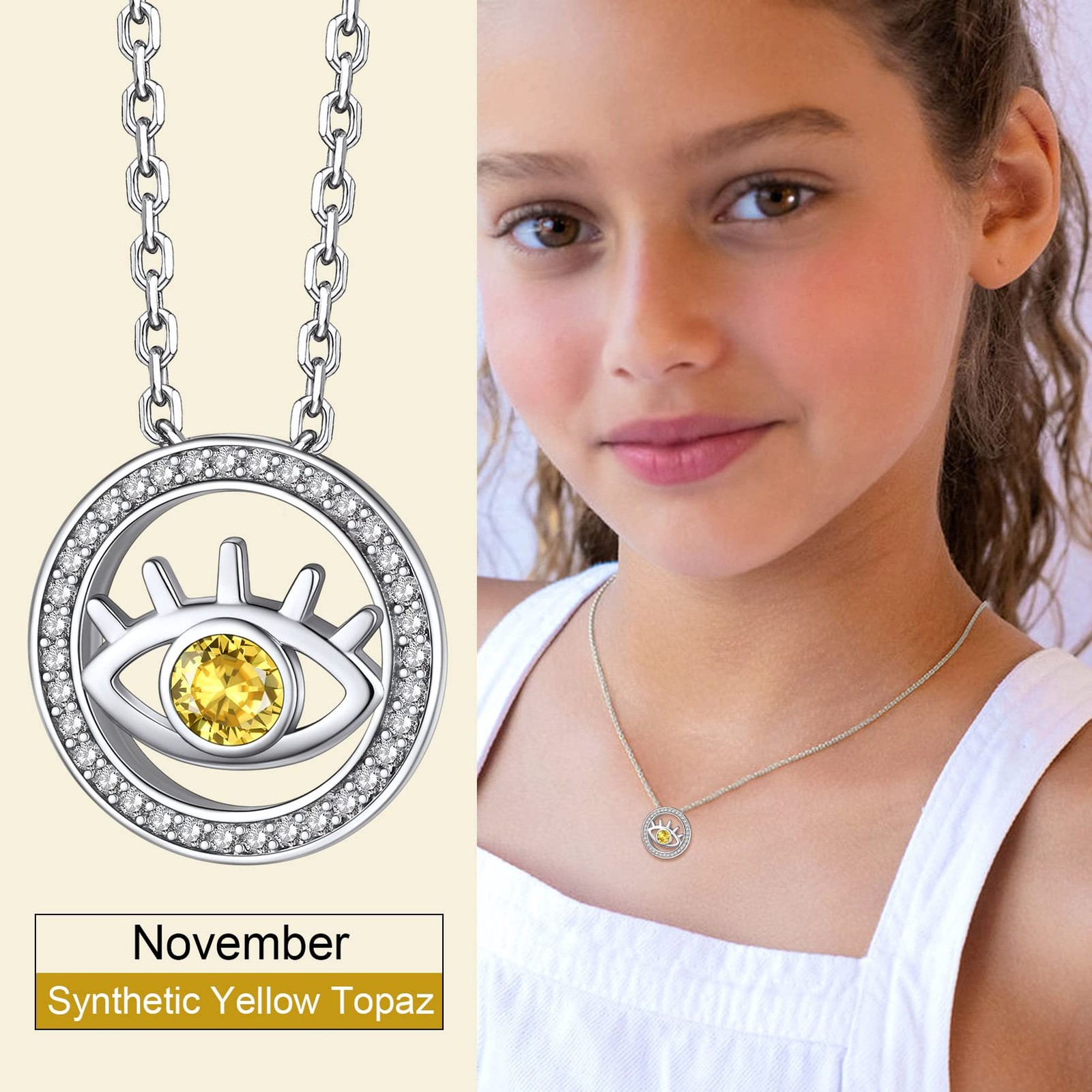 $ 84.9November Birthstone Necklaces for Women - Bule Topaz Necklace, 18K White Gold...