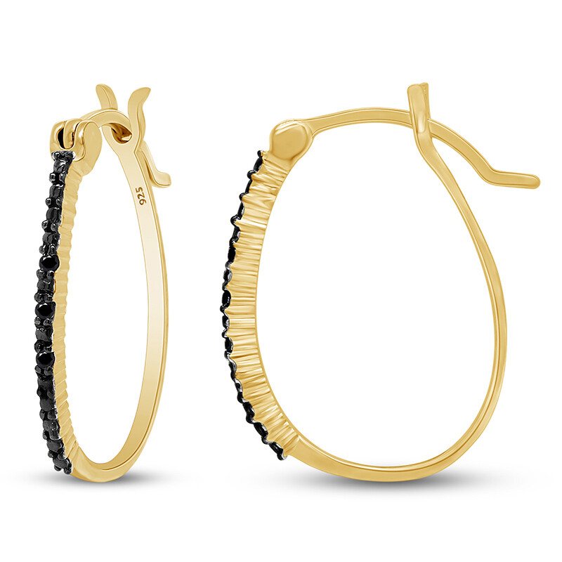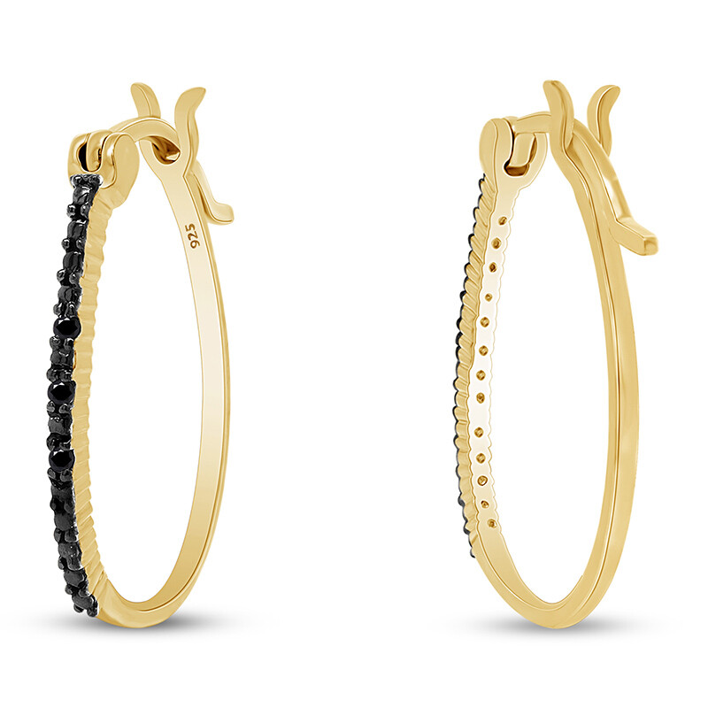 Hoop Earrings Black Real Diamond 14K Yellow Gold Over Sterling Silver For Womens PRODUCT DESCRIPTION Product Information Brand Affinity Home Shopping Type Earrings Style Hoop Metal Sterling Silver Base Metal Sterling Silver Metal Purity 925 Parts per 1000 Total Carat Weight (TCW) 0.03 Main Stone Diamond Main Stone Treatment Color Enhanced Main Stone Creation Natural Main Stone Color Black Main Stone Shape Round Clarity I2-I3 Diamond Color Black Cut Very Good Setting Style Prong Gender Women's Fastening Snap Closure Occasion Engagement/Wedding/Anniversary/Promise/Valentine This Product Available in Metal Color: White / Yellow / Rose upon the request This piece of jewelry is a made to order item which take approx. 5 days time to make before we ship. Pictures have been enlarged to show details PAYMENT We only accept payment via PayPal Please sent the payment to us within 8 days after the auction has ended, or you will have unpaid case auto open by eBay. SHIPPING We will ship all items within 1-2 business days of purchase during the work week (M-F) excluding holidays. If you order on Friday, your order will be shipped the following business day. Tracking will be provided when it becomes available. Domestic delivery may take up to 1 week. It all depends on the local office. Once the order leaves our location, we have no control over delivery times. We will only ship to a Paypal Verified Address. Please make sure your address is current and correct. If the information does not match, your order may be canceled. Buyers are responsible for all customs, duties and taxes for your respective countries. Delivery times for International Shipping will vary. California Buyers Pay 9.0% Tax on all orders.d case auto open by eBay. Source Level Destination Shipping Provider Fees Each Additional Economy Shipping United States Economy Shipping Free $0.00 First Class Mail Canada USPS First Class Mail International $13.99 $4.99 Express Priority Mail International USPS Express Priority Mail International $54.99 $4.99 TERMS OF SALE Returns are accepted. Buyer must contact us within 30 days after the item is received. Item must be returned in unworn and resalable condition. We will only issue a refund for the purchase price, excluding any shipping fees. If we are at fault, we will provide a full refund. Buyer is responsible for all return shipping costs. FEEDBACK Please do not leave a negative feedback as a way to communicate. Any rating given to a seller can neither be changed nor modified. So better communicate for faster resolution to any disputes. If you have any concerns regarding your purchase, please contact us via eBay Message, we assure you that a satisfactory resolution will be reached. Please help us maintain a 5 Star DSR rating in all 4 rating categories, if you feel otherwise, please let us know how we can score a perfect rating from you before you rate us. Thank you for shopping with us!! Have a nice day