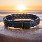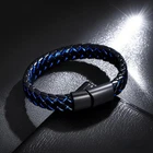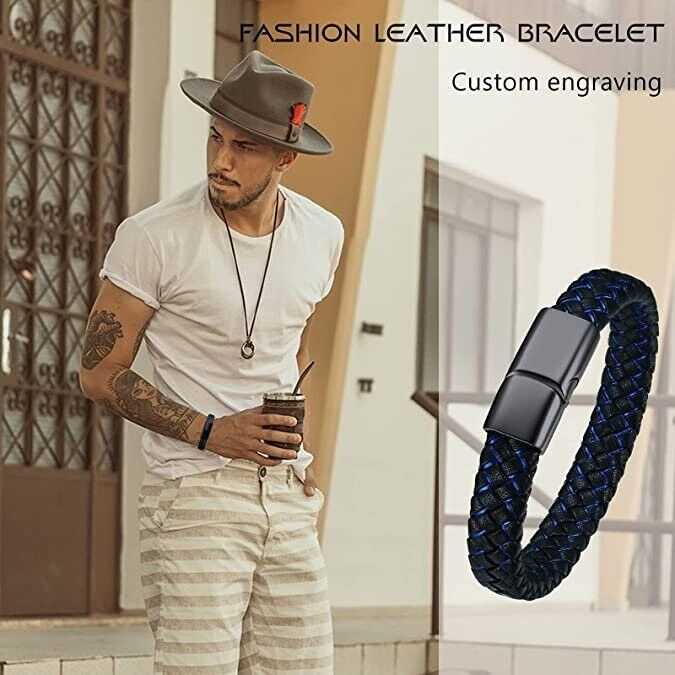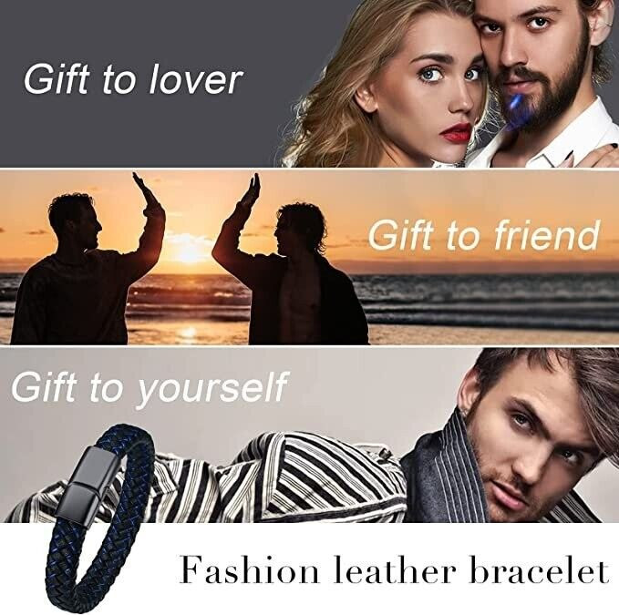 Men Black BLUE Braided Leather Stainless Steel Magnetic Clasp Bracelet Well made:This bracelet is soft and elastic, comfortable to wear, and made of hand-woven leather.Fine workmanship, simple design style, Perfect Length:The inner circumference of the bracelet has 8.07"(205mm), choose the size of the bracelet according to your wrist. High quality magnetic buckle:This has a really unique latch system that is magnetic and is like fitting a puzzle piece together so it holds super strong. This bracelet also has a tight leather weave to enhance the look of it. PERFECT GIFT:perfect for anyone wanting a quality product for a gift or for a “ treat “ for yourself on Christmas day, birthday, valentines day, father\\\\\\\\'s day, anniversary, Thanksgiving day, or just as a surprise to remind that special one how much you care.