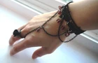 Black Bracelet Ring Wrist Wrap, Victorian Goth Adjustable Handmade Lace Jewelry