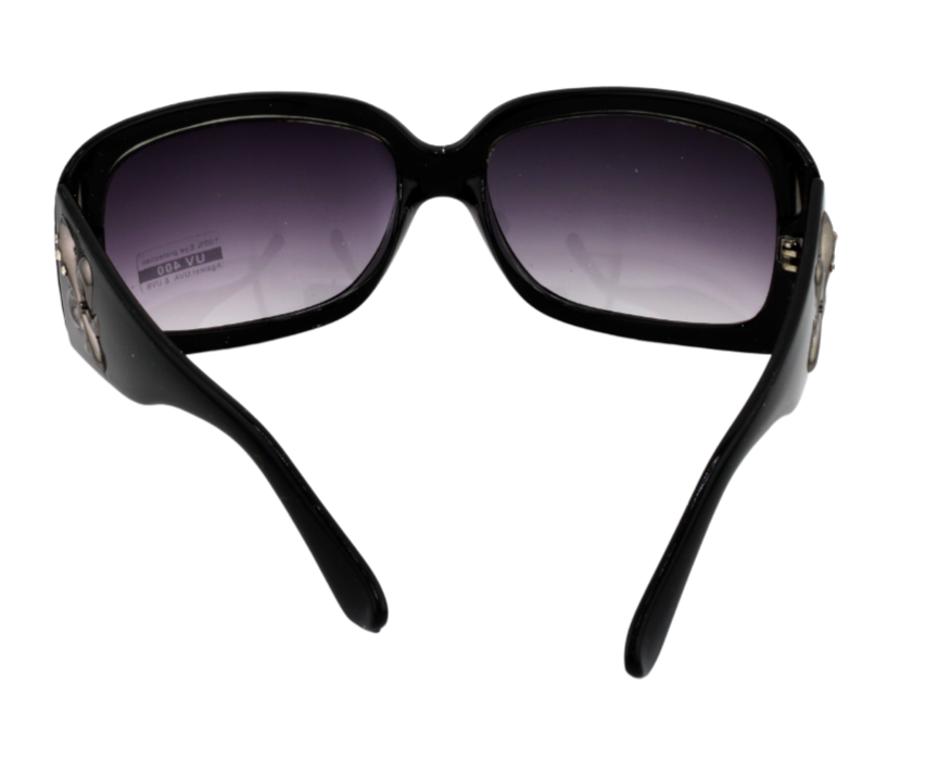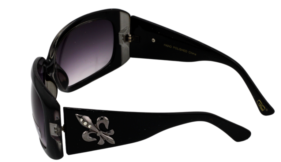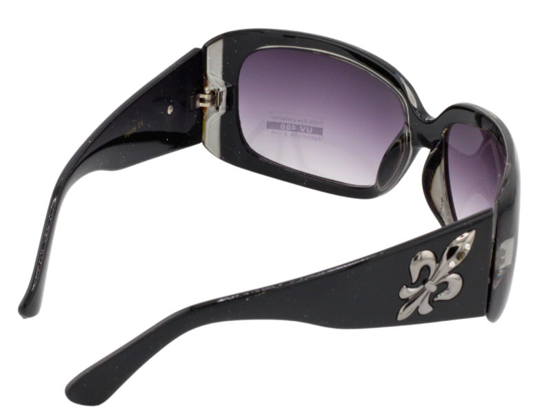 Add a touch of classic glamour to your outfit with these stunning oversized SUNGLASSES. The black with ruby red details plastic frame with a Fleur de Lis detail at the temple, plus gradient lavender lenses make these SUNGLASSES perfect for any occasion. The large, lightweight design offers a comfortable fit for all-day wear. With UV400 protection, your eyes will be well-protected from harmful rays while you rock out in style. Made from high-quality plastic, these sunglasses are both durable and fashionable. Add a touch of retro charm to your wardrobe with these fun and novelty sunglasses. NOTE: THE CLEAR SECTION OF THE FRAME IS CIRCLED IN RED IN THE FIFTH PHOTO. It's actually clear even though it looks gray. Please let me know if you want additional photos or have questions.