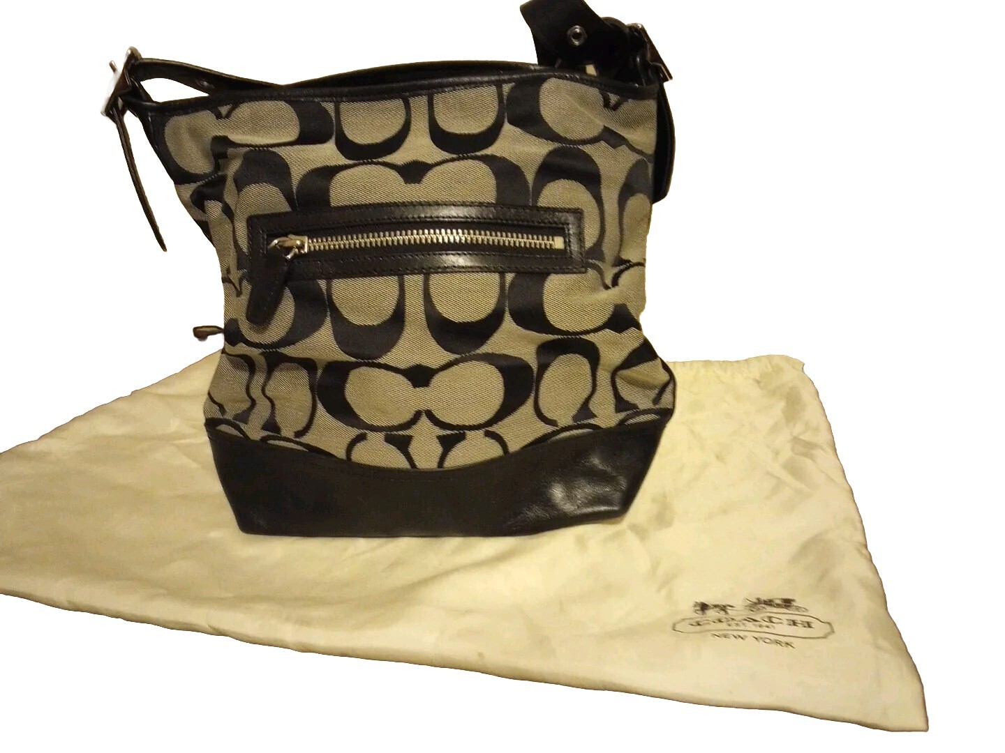 This crossbody bag from Coach is a stylish and convenient accessory for any woman on-the-go. The exterior is made of high-quality black leather with the iconic Coach logo pattern, while the handle and strap are also made of leather in black. It features a zip closure and is considered medium-sized, making it perfect for carrying everyday essentials. The bag is categorized under Women's Bags & Handbags and can be found in the Clothing, Shoes & Accessories section of eBay. If you're looking for a versatile and stylish bag that's perfect for any occasion, this Coach crossbody is a great choice.