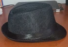 Crafted for both style and comfort, this classic black fedora hat is a timeless accessory to complement any ensemble. Sized at 58, it's designed to fit an adult medium, and its solid pattern exudes a sophisticated charm that's versatile for any occasion. The hat's lightweight construction, made from quality cotton with a polyester ribbon, ensures a comfortable wear that's perfect for all-day events. Whether you're dressing up for a formal event or adding a touch of class to your everyday look, this fedora's sleek design will be a perfect finishing touch. It's a staple piece that every gentleman's wardrobe should include, offering an air of elegance and a nod to timeless fashion.
