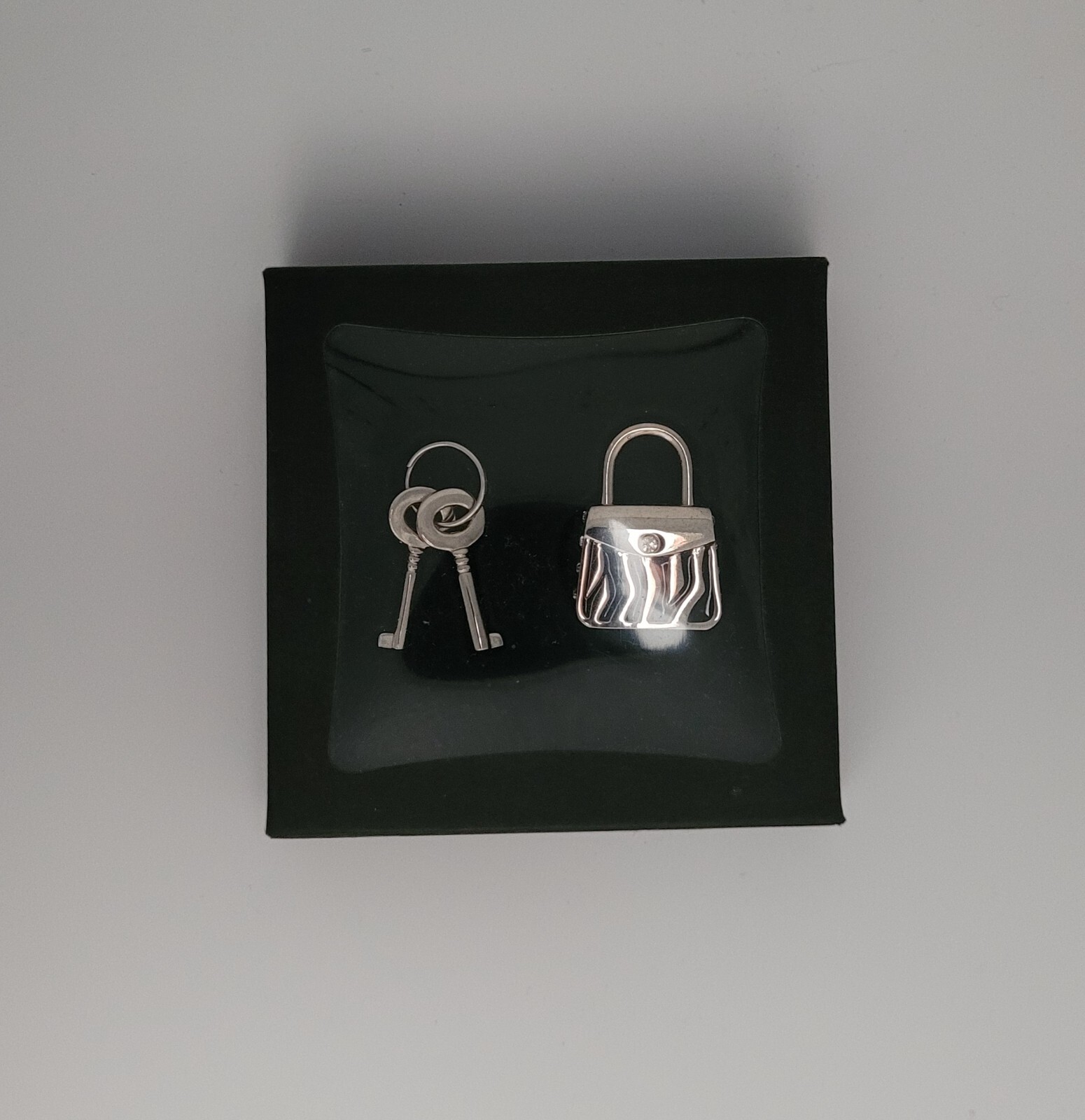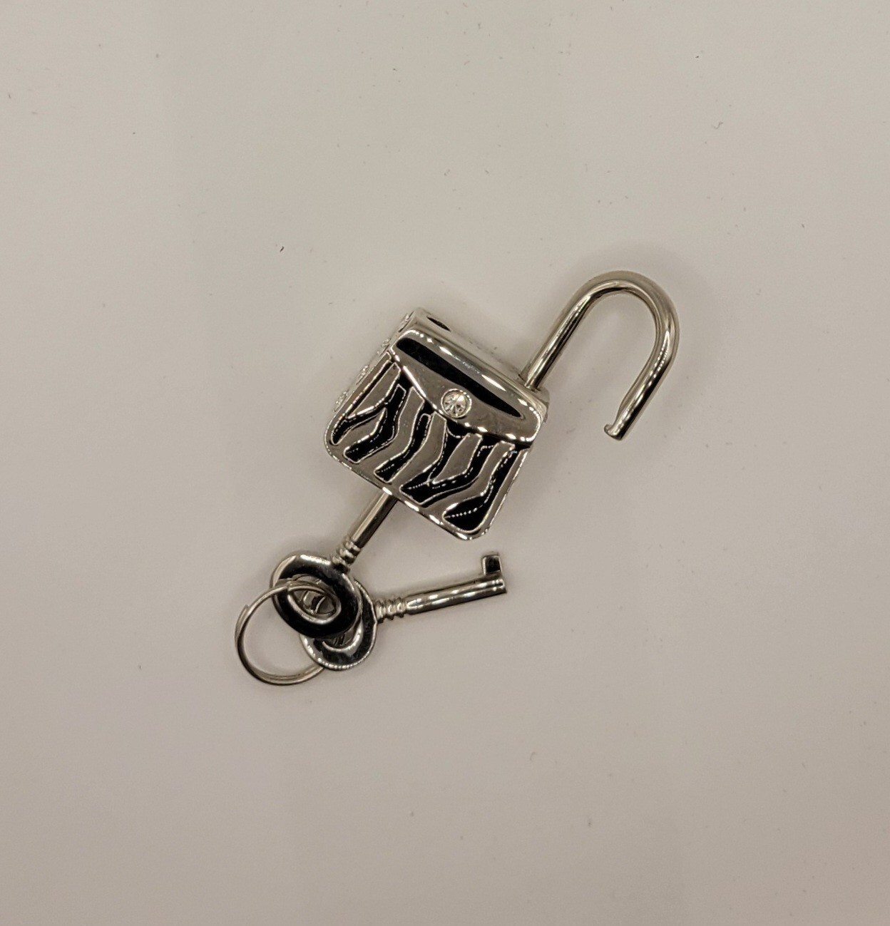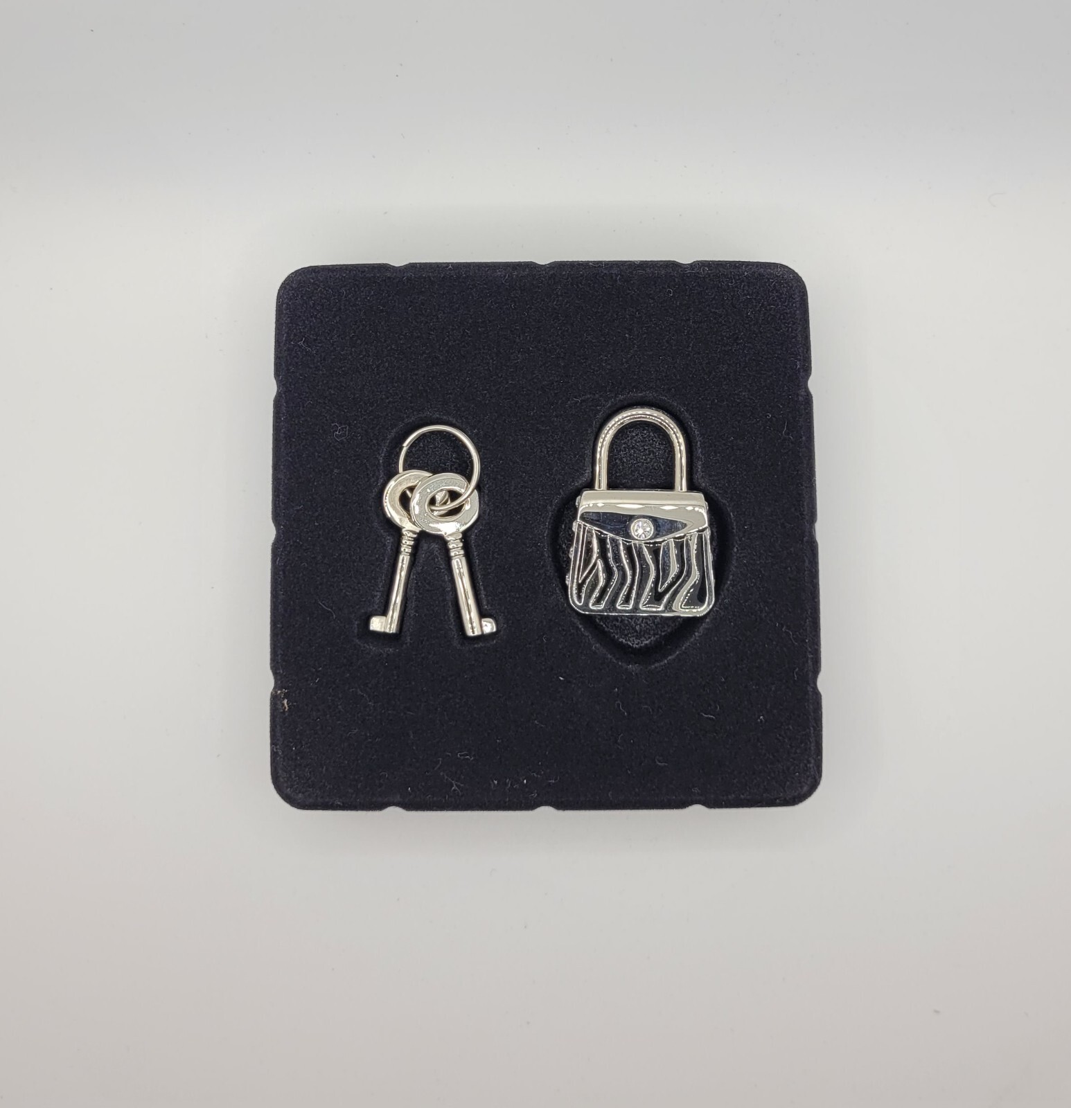 Handbag Charm Keychain Black Pocketbook Lock & Keys With Crystal Rhinestone New In Box