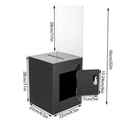 Package Included 1* Ballot Box 2* Keys Specification Color: Black Style: Modern Shape: Rectangular Material: Acrylic Process: Assembling, Bonding Assembly Required: No Mounting Type: Tabletop Lock Type: Key Number of Keys: 2 Capacity: 0.0075m³/0.26ft³ Suspended Load Capacity: 2kg/4.4 lbs Thickness: 3mm/ 0.12in Product Overall Height: 56cm/ 22in Package Size: 25*33*30cm/9.84*12.99*11.81in Box Size: 21.6*21.6*28cm/8.5*8.5*11in Box Door Size: 12.7*15.24cm/ 5*6in Sign Holder Size(L*H): 22*28cm/8.5*11in Slot Size: 100*5mm/ 3.93in*0.2in Gross Weight: 2.8kg/ 6.17lbs Net Weight: 2.3kg/ 5.07lbs Black Donation Box with Lock Ballot Box with Sign Holder Suggestion Box USA Description Voting or fundraising activities are right in front of you, but do you lack practical voting boxes? Let's take a look at our acrylic ballot box! With a lock and two keys, it can help you organize more professional voting and fundraising activities. Why wait? Choose our ballot box at the heart of your activities now! Key Features High-quality and Durable: It is made of high-quality acrylic with assembling and bonding processes, which has high tenacity and is not easy to break and deform. Suitable Size: The box size of 8.5*8.5*11 in ches provides sufficient space to accommodate items like coins and coupons while only taking a small footprint, making it a very suitable size. Professional and Modern: It can be used as a ballot box, charity box, etc., and the black, modern appearance adds a solemn and professional image to your activities. Good Protection: It has a lock with 2 keys that can prevent the loss of internal items and also provide convenience for you to take out internal items. Good Helper: With the help of this ballot box, you can easily accept the opinions of employees or customers and solve existing problems promptly, which is conducive to improving your image and providing better services for them. Easy to Clean: The smooth surface and simple structure allow you to easily remove dust from the surface with a towel. Ideal Gift: This practical product will be a wonderful surprise for your friends who need voting and fundraising activities , making their activities more professional. Buy with Confidence: We stand behind all our guests and look forward to assisting you with your purchase. It is our pleasure to answer your confusion and questions. The end of the story between us is not "we sell and you buy". Details Sign Holde r : You can insert paper with voting or donation promote information into it without the need for glue. The curved groove design makes it more convenient for you to take out the paper from the sign holder. Slot : It is convenient for you to put in letters or cards. Application It is suitable for restaurants, companies, churches, coffee shops, hotels, salons, bars, proms, parties, marketing promotions, tradeshows, exhibitions, etc., to accommodate donations, ticket comments, suggestions, coupons, ballots, notes, coins, business cards, and tips. Specification Color: Black Style: Modern Shape: Rectangular Material: Acrylic Process: Assembling, Bonding Assembly Required: No Mounting Type: Tabletop Lock Type: Key Number of Keys: 2 Capacity: 0.0075m³/0.26 ft³ Suspended Load Capacity: 2kg/4.4 lbs Thickness: 3mm/ 0.12in Product Overall Height: 56cm/ 22in Package Size: 25*33*30cm/9.84*12.99*11.81in Box Size: 21.6*21.6*28cm/8.5*8.5*11in Box Door Size: 12.7*15.24cm/ 5*6in Sign Holder Size(L*H): 22*28cm/8.5*11in Slot Size: 100*5mm/ 3.93in*0.2in Gross Weight: 2.8kg/ 6.17lbs Net Weight: 2.3kg/ 5.07lbs Package Included 1* Ballot Box 2* Keys Notes Please confirm the dimensions before purchasing. Please note this product does not include any card or money. Please allow the slight color difference caused by the shooting light and 1-3 cm error due to manual measurement, and make sure you do not mind before ordering. Payment Delivery details Terms of sales About us Contact us Payment We accept ebay payment 。 Fees such as import duties, taxes are not included in the item price or shipping costs. These charges are the buyer's responsibility. Delivery details Shipping: 2-9 working days to: USA Terms of sales We maintain high standards of excellence and strive for hundred percent customer satisfaction. Feedback is very important to us. We hope that you contact us immediately before you give neutral or negative feedback, so that we can address your concerns. It is impossible to address issues if we do not know about them! About us Your satis faction is our ultimate goal. We work hard to earn your trust and future business. Our certified technicians have tested each item before shipping. The unit comes with 1 year limited warranty on all manufacturing defects. a) If you receive a defective item, you may return it or ask for a discount. Please contact us within 14 days after you receive the package. b) What you returned must be intact and in its original packaging as re? u. Customer is responsible for shipping costs of the returned item. c) We will cover the cost of shipping back t with the shipping rate indicated in the registration page. We will send you a new unit or refund the full payment you paid. Thank you. Contact us Business Hour Business Hour: Monday To Friday: 8:30 AM to 5:00 PM (Beijing China time) Due to time zones, our reply to your questions may not be immediately. But within above working time, we will reply your email within 24 hours. If it's non-workdays, please kindly be patient and wait till Monday. Please contact us with ebay message. Please feel free to contact us if you have any questions. Monday To Friday: 8:30 AM to 5:00 PM (Beijing China time) Due to time zones, our reply to your questions may not be immediately. But within above working time, we will reply your email within 24 hours. If it's non-workdays, please kindly be patient and wait till Monday. Please contact us with ebay message. Please feel free to contact us if you have any questions. On Nov 5, 2024 at 18:28:39 PST, seller adde