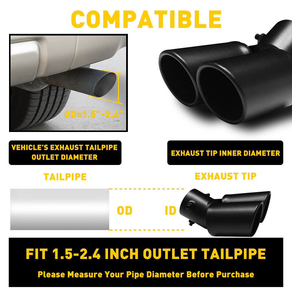 Warm Tips: Only Fit For Most Vehicles With 1.4 inch - 2.5 inch Inlet Diameter Pipe. Pls Refer Dimension to Make Sure It Will Fit Before Purchasing. Features: Universal durable stainless steel exhaust tip Will give you equal pressure and tone threw out Directly bolt-on with no modification require Weld on design, Easy to install. Size: Total length: 19.5cm Inner diameter: 6.24cm Outer diameter: 12.54cm Specification: Black Car Rear Dual Exhaust Pipe Tail Muffler Tip Auto Accessories Replace Kit Warm Tips: Only Fit For Most Vehicles With 1.4 inch - 2.5 inch Inlet Diameter Pipe. Pls Refer Dimension to Make Sure It Will Fit Before Purchasing. Features: Universal durable stainless steel exhaust tip Will give you equal pressure and tone threw out Directly bolt-on with no modification require Weld on design, Easy to install. Size: Total length: 19.5cm Inner diameter: 6.24cm Outer diameter: 12.54cm Specification: Product packaging: Carton packaging Type: Dual Exhaust Pipe Application: Car SUV Rear Product color: Roasted blue Appearance: Bend bevel Material: Stainless steel Suitable range: Exhaust pipe with a diameter of 6.24cm Applicable models: Universal Fitment Type: Direct Replacement Warranty: 2 Years Package Include: 1X Black Dual Exhaust Pipe Note: We offer a 2-year warranty and 60-day free returns. If you have any questions about our product, please contact us first, we will help you with it. We will reply you within 24 hours in working days. I'm a new seller, thanks a lot for your trust and convince! I will serve you with all my heart. Contact us: 1. Negative feedback will not help resolve any problems you have, please contact us via eBay messages before leaving negative feedback, our customer service will make best effort to help you with the issues. 2. We maintain high standards of excellenceand strive for 100% customer satisfaction! Feedback is very important to us. We request that you contact us immediately Before you give us neutral or negative feedback, so that we can satisfactorily address your concerns. Item Specifics Brand Unbranded Manufacturer Part Number Black Dual Exhaust Tip-EXI Color Black Features Easy Installation, No Drilling Required Product packaging Carton packaging Appearance Bend bevel Manufacturer Warranty 2 Year Fitment Type Direct Replacement Country/Region of Manufacture China Material Stainless steel Suitable range Exhaust pipe with a diameter of 6.3cm Type Dual Exhaust Pipe Placement on Vehicle Rear Product color Black Package Include 1 PCS Dual Exhaust Pipe Application Car SUV Rear The product contains 1*tail throat Applicable models Universal Application Car SUV Rear The product contains 1*tail throat Applicable models Universal Payment 1. Instant PayPal payment is the preferred method of payment. We also accept payment via PayPal, DebitCard, Visa, MasterCard, Discover. 2. Before payment,Please keep the consistency of Paypal address and ebay address. 3. Quantity orders are welcome! Shipping 1. All items will be shipped in 24 hours after receiving your payment . 2. We ship this item to US only via USPS first class mail. It usually takes 3-6 working days to deliver. Returns 1. We offer free return & money back guarantee. If you are not satisfied with your purchase for any reasons, you can return the item for refund or replacement/exchange. All returns must include the original packaging. (Please refer to our return policy for details.) 2. If you don't return goods within 60 days from date of purchase, your right to cancel will be revoked. Any items damaged because of incorrect installation will not be refunded. Please contact us for return or troubleshooting help prior to returning any products. Contact Us 1. Negative feedback will not help resolve any problems you have, please contact us via eBay messages before leaving negative feedback, our customer service will make best effort to help you with the issues. 2. We maintain high standards of excellenceand strive for 100% customer satisfaction! Feedback is very important to us. We request that you contact us immediately Before you give us neutral or negative feedback, so that we can satisfactorily address your concerns. FAQ 1. Can you tell me when my order will be shipped? Actually we will ship the item within 1 business day after receiving orders. But USPS need to take longer time to update tracking info and arrange delivery during the challenging time for now. If your order was not shipped more than 3 business days, please contact us with your order number to get quick support. 2. My item has not arrived, what's taking so long? Sometimes items take longer than expected, especially if it's going far or to rural area. Check with your post office to see if your item has been held up. Sometimes USPS will not update a tracking number until it has arrived at its destination. If your item still has not arrived after a few days, let us know so we can double check for you and help solve it asap. 3. Do you ship to Canada, United Kingdom, Australia, etc.? Unfortunately, we could only ship to United States (Domestic shipment) at the moment. 4. I bought the wrong items/ the items were not compatible with my vehicle. Please contact us via ebay message to get quick support. DESCRIPTION PAYMENT SHIPPING RETURN POLICY CONTACT US Hot Item 40x Engine Under Cover Splash Shield Guard Body Bumper Bolts U-nut Clip Fastener USD 9.49 For Honda CRV Front Bumper Wheel Molding Trim Fender Left &Right 71103-SWA USD 11.09 100PCS For Ford Fender Bumper Hood Moulding Side Garnish Grille Clip Retainer USD 10.44 Universal 4PCS Car Flaps Mud Guards Splash Front Rear for Auto Car Accessories USD 25.09 Fuel Door Gas Cap Hatch Cover & Trim Moulding For Ford 2015-2019 Transit-250 USD 13.29 New List Item Fog Light Switch Fit Chevy Tahoe Silverado Avalanche GMC Sierra Yukon 2003-07 USD 14.99 Fit Toyota Venza 2009-2015 2x Rear Exterior Outside Door Handle Driver Passenger USD 24.99 Red LED White License Plate Light Fit 2005-2015 Toyota Tacoma 00-13