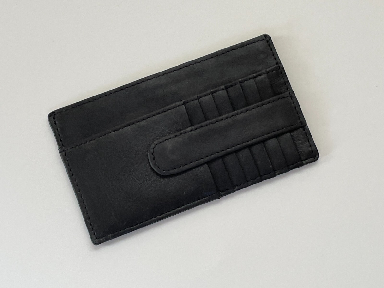 Leather Card Holder Unisex Long Wallet Black Genuine Leather Purse Cardholder New Handmade Genuine Black Leather Size: 6 X 3.5 inches Color: Black 14 slots for credit/credit cards 2 hidden slots 1 slot for bills 1 coin pocket with zip Made in Pakistan