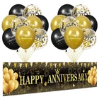 Black Gold Wedding Anniversary Decoration, Black Gold Happy Anniversary Yard Banner and 18Pcs Happy Anniversary Latex Balloons for Black Gold Wedding Anniversary Birthday Party Decorations Specifications: Color: Black and gold Banner size: 98.4 x 17.7 inch / 250 x 45cm Balloon size: 12 inch Material: Polyester, latex Package Includes: 1 x Black and gold happy anniversary yard banner 6 x Black balloons 6 x Gold balloons 6 x Confetti balloons Note: 1. Due to manual measurement, please allow a slight error in size. 2. Due to the difference in the display, the color may be slightly different. ✨【Package Includes】You will get 1 pcs of black and gold happy anniversary banner measures 98.4 x 17.7 inches (250 x 45 cm), 18 pcs of 12 inch happy anniversary latex balloons in different colors ❤️【Black Gold Anniversary Decoration】The glittering gold and black happy anniversary banner with fireworks, bunting, balloons and other anniversary elements; gold, black and confetti 3-color latex balloons are printed with the letters "Happy Anniversary", creating a shiny and fancy anniversary party for you ✨【Wide Application】The black gold anniversary decorations are suitable for wedding anniversaries, birthday parties, friendship anniversaries and other anniversaries parties, you can also decorate them on the walls, windows, dessert tables, yard, trees, cars, and indoor or outdoor places ❤️【Easy to Use】The black gold anniversary yard sign with 4 copper holes, it can easily be hung with a rope; these anniversary latex balloons can be filled with air or helium and you can fix it on tables, chairs, walls, floors, etc, your family and friends will enjoy it ✨【Durable Material】Our black and gold happy anniversary yard banner is made of durable polyester material, which is lightweight, portable and reusable; the happy anniversary balloons are made of quality latex, not easy to break Shipping from the USA All of our products are shipped from the USA, ensuring quick delivery to your destination. Payment We offer the following payment methods: PayPal, credit card, bank transfer, and eBay's secure payment system. Free Shipping & Free Returns Shipping within the USA is FREE. Additionally, any return is absolutely free for you. Risk-Free Purchase You have the option to return an item within 30 days without any justification. We cover the return shipping costs! Fast Shipping We ship immediately upon receipt of payment. Generally, the package is delivered within 2-3 days in the USA. If it takes longer, we will contact you. Quality and Costs Made in Europe, USA, China No customs fees or additional charges Total satisfaction guarantee Invoice with declared VAT available upon request in .pdf format Feedback Your feedback is very important to us. After you pay for your purchase, you will automatically receive positive feedback from us.
