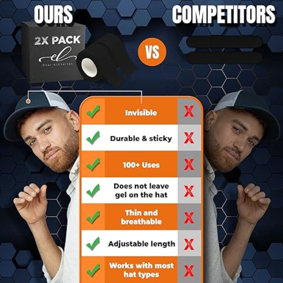 About this item 💡Your Go-to Liner for Protecting Hatwear from Sweat and Sunscreen Stain: This tape is specifically designed to protect or cover hats and caps from hat sweat stain and hat sunscreen stain when the forehead comes in contact with the inner brim of the hat. 💡Generous Quantity: Each pack comes with 2 rolls of 5-meter hat liner tape, totaling 10 METERS, therefore offering 10 times more usage than traditional sticker-form hat brim liner and hat protectors. 💡Durable and Sticky: This hat pad tape is thinner and therefore stickier and more durable than other forms of hat liner. Users can leave the tape on the hat after a single day or multiple days of use. 💡Your Clean Little Secret, No One Would Ever Know: In contrast to many hat accessories, this tape is invisible from the outside after being applied to the inner brim of the hat, ensuring the hat's aesthetics are not compromised. 💡Your Face Will Approve: Thin and breathable for comfortable wear, skin-friendly and clean, safe with face and sunscreen, and can be peeled off your hat after use without leaving residue on the hat, making it the safest cap liners for hats. 💡Simple and User-Friendly: Simply TEAR / CUT, PEEL, and STICK! The tape's easily adjustable and user-determined length ensures a great fit for most if not all occasions. Dimensions: 2.95 x 2.95 x 2.64 inches; 2.4 ounces.