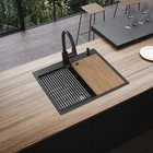 Black Kitchen Sink Workstation, 25x22 Inch Stainless Steel Drop In Modern Large Single Bowl Workstation Sink Accessory Combo-SS Grid,Drying Rack,Cutting Board,Soap Dispenser, Drain Strainer Set Product Details Model: 25x22 Black Brand: Koardink MPN: 25x22In workstation UPC: 717225342708 EAN: 0717225342708 Brand: Koardink Color: Black Material: Stainless Steel Size: Large Product Dimensions: 22"D x 25"W x 9"H Brand: Koardink Color: Black Material: Stainless Steel Size: Large Product Dimensions: 22"D x 25"W x 9"H Style: Classic Installation Type: Countertop Finish Type: Brushed Shape: Rectangular Drain Type: Grid Item Weight: 12.16 Kilograms Product Care Instructions: Wipe with Dry Cloth Hole Count: 1 UPC: 717225342708 Manufacturer: Koardink Part Number: 25x22In workstation Item Weight: 26.7 pounds Item model number: 25x22 Black Finish: Brushed Included Components: Drain assembly Batteries Included?: No Batteries Required?: No Date First Available: December 18, 2023 Single Bowl Kitchen Sink Combo: Including 11Gauge SS kitchen sink, stainless steel bottom grid, roll-up drying rack, cutting board,soap dispenser and drain assembly for kitchen sink workstation. The built-in accessories fit nicely within the kitchen sink workstation, allowing you to utilize the entire surface effectively. Enhanced Functionality: Kitchen sink workstation design maximizes the use of available space in the sink area. Whether you're chopping vegetables, rinsing fruits, or drying dishes, the workstation provides the necessary features and space to handle different activities, making it a flexible and practical addition to any kitchen. Stainless Steel Sink: With exterior size-25"x22"x9", interior size 23"x18"x9", integrated ledge-0.6"Wx0.8"H, black topmount kitchen sink provides enhanced functionality, allowing to handle larger pots, pans, and baking sheets with ease. The size of SS black kitchen sink allows for comfortable and convenient use, making kitchen chores more efficient. Fast Drainage Design: X-groove located on the bottom surface of the drop in kitchen sink is design to guide the water towards the drain, minimizing water stagnation and reducing the chances of water accumulation. X-groove and US standard drain assembly of black kitchen also reduce the amount of time spent waiting for the sink to empty. Surface Technology: Brushed finishing and nano technology make black top mount kitchen sink resistant to scratches and temperature, repeling water and oil stain makes it easier to clean. Anti-condensation coating prevent water droplets forming. Sound dampening pad reduce noise caused by running water or dishwashing.