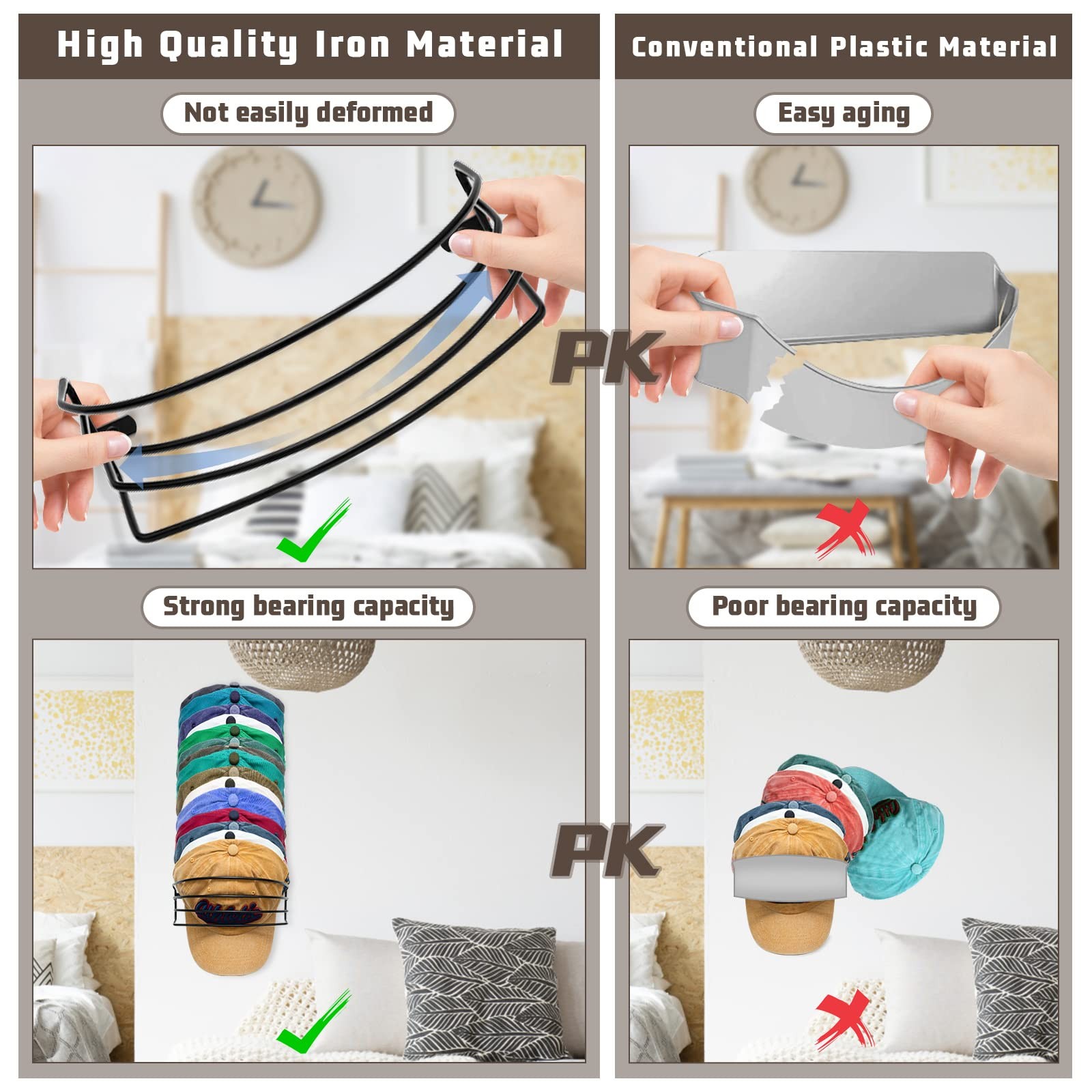 Are you bothered with your ball cap organize, or afraid that random storage will damage the shape of your hat? baseball hat organizer is the perfect solution to your hat organize problem! ❤【Packaging hardware】2 pieces of metal material hat holder storage rack black, 2 pair of super adhesive hooks and 2 pair of screws. hat storage baseball cap organizer baseball hat storage organizer hat rack for wall hat holder on wall closet organizers and storage hat organizer for baseball caps hat wall organizer baseball hat rack hat wall storage cap holder organizer for closet hat storage for baseball caps ball cap storage organizer baseball cap storage baseball cap holder ❤️【Wall-mounted Hat Organizer】The 2-pack metal hat organizer black only takes up a small space on wall or door or closet and can store many baseball hats with brims. This hat storage is very suitable for the living room, entrance, bedroom, cloakroom, and avoids the trouble of hats being messy and deformed. ❤️【High Quality Metal & Simple Style】baseball cap organizer is made of high quality metal, sturdy and not easy to deform and rust. The black simple line design is stylish and beautiful, and the appearance of hat rack for wall is round and smooth without sharp corners, which makes the hat holder do no damage to baseball caps and you. ❤️【Keep Hats in Shape】The baseball hat storage organizer is different from other traditional wall-mounted cap racks with hooks or clips, black hat storage for baseball caps adopts arc design to keep the shape of caps and hats. ❤️【Large Capacity】The deepened width of the hat rack and organizer can not only store more hats, but also not easy to drop the caps, which is convenient for you to place and pick up the baseball hats. A good choice for hat storage idea. ❤️【Easy to Install】The ball cap organizer comes with strong adhesive hooks and screws, you can choose the appropriate installation method to install this wall-mounted cap storage according to situations.The sticky hook is different from the traditional hanger hook, it is fixed by screw, not an ordinary hook, so it is more stable than the traditional hook. ⚠️Please Note: Don't stick the hat holder on paper wall or rough surfaces, adhesive can be pasted on smooth surfaces ONLY.