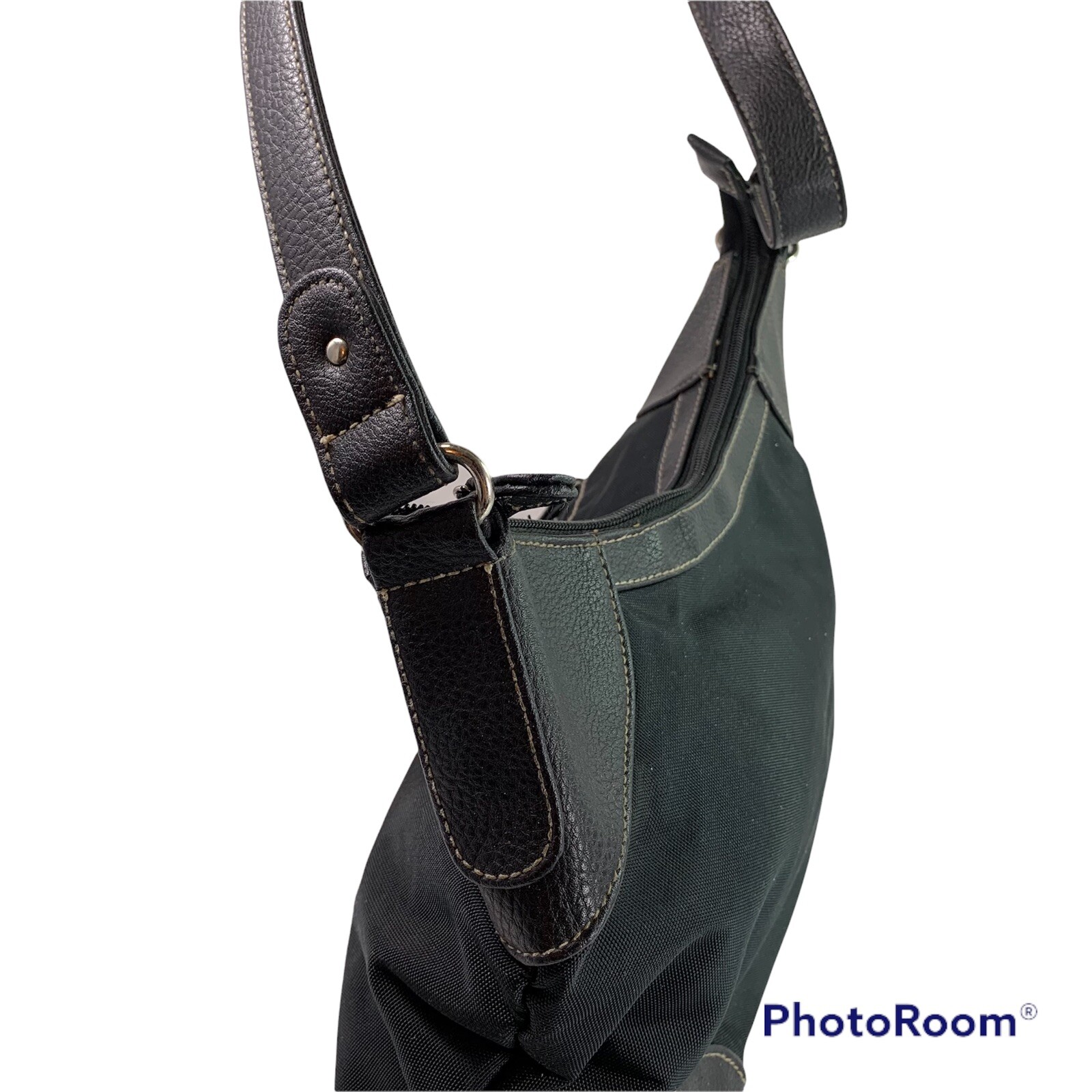 Shoulder Bag Women’s Black Nylon PU Leather Trim 8x14x3”.