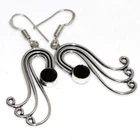 Black Onyx 925 Silver Plated Gemstone Earrings 2.1" Modern Gifts JW