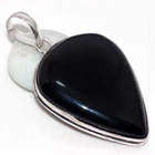 Black Onyx 925 Silver Plated Gemstone Pendant 2.3" Aesthetic Jewellery JW