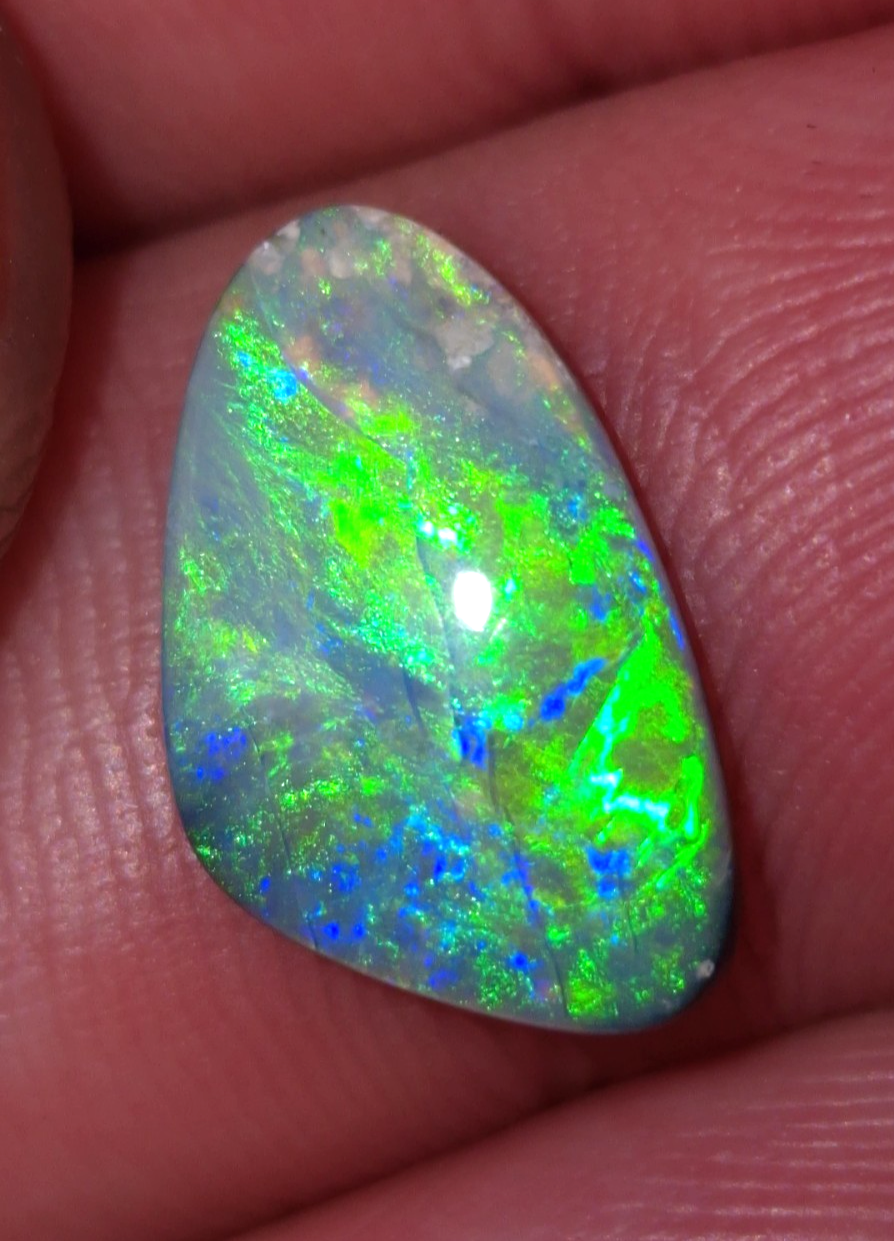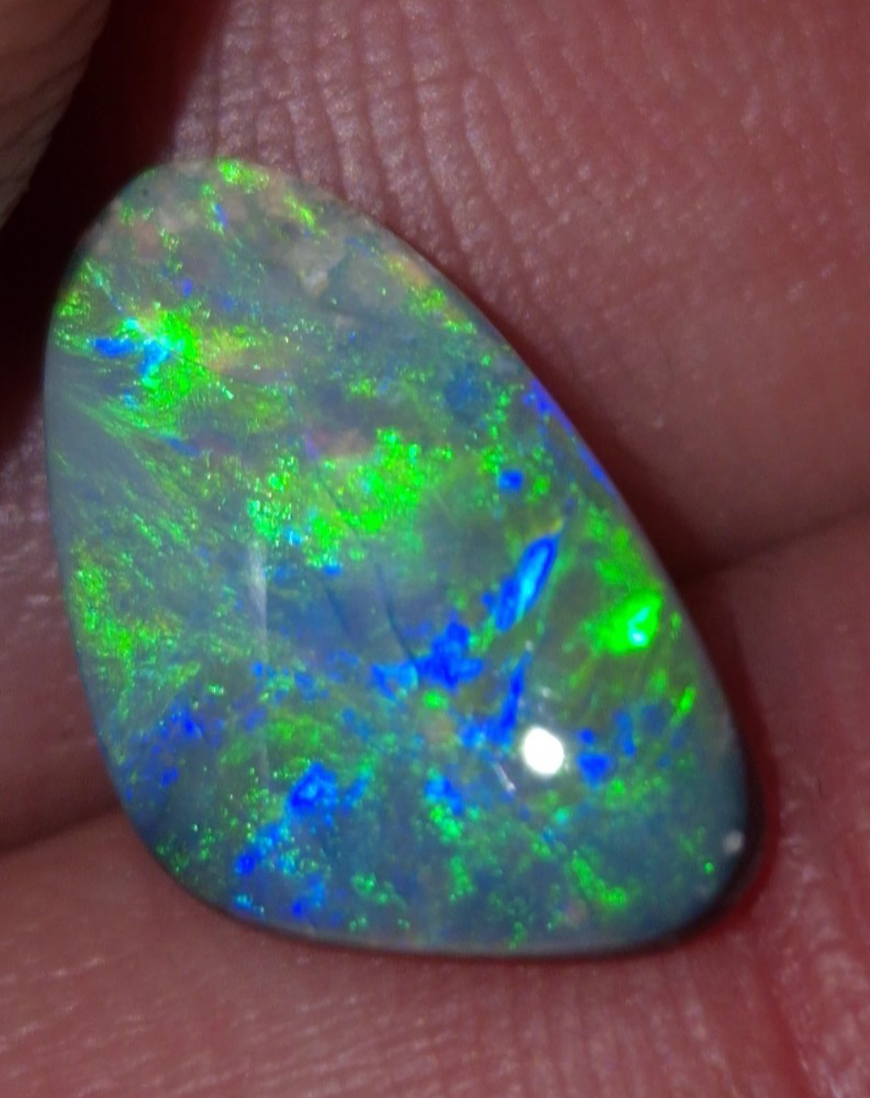 Gorgeous Gem Opal from mintabie. Slight crazing in the face hence price. Still a wonderful vibrant Gem and the stone is stable. Gem Green/blue on black potch. High lustrous polish and ready to be set. The Black Opal Stone from Mintabie is a rare and stunning gem cabochon, showcasing a very good cut grade with opalescence effect. This natural and polished gemstone, sourced from Australia, exudes a sophisticated allure with its black colour and opaque transparency. Perfect for jewellery enthusiasts looking for a unique and high-quality gemstone, this wholesale piece is sure to add a touch of elegance to any creation.