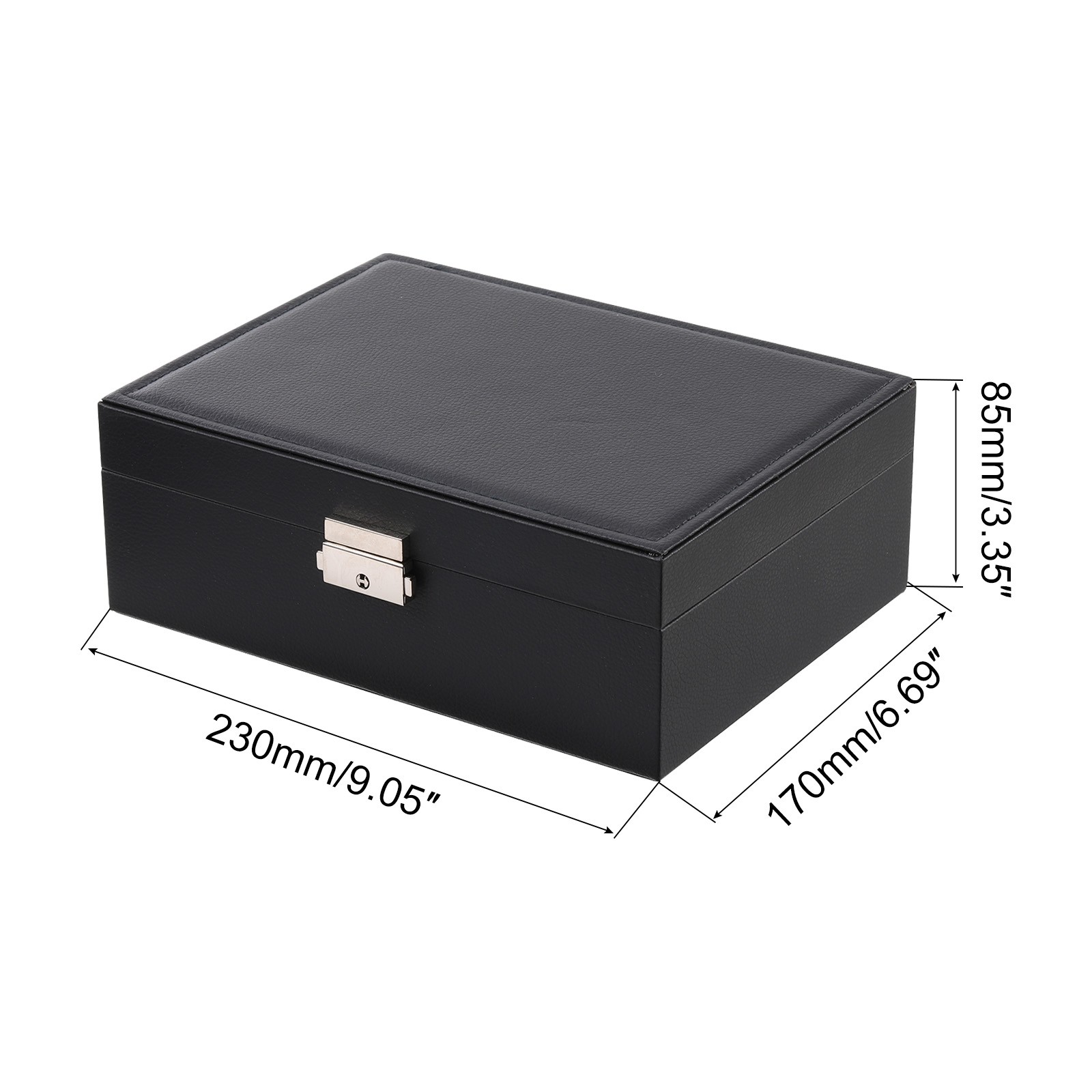 Document What is this?The jewelry organizer is designed for use in storing and organizing jewelry and protects your jewelry from dust, fingerprints, and scratches, equipped with metal keys to lock and unlock easily to provide extra security for your valuables.What will I get?The jewelry box, we provide here,Color: BlackMaterial: PU LeatherSize: 230 x 170 x 85mm / 9.05 x 6.69 x 3.35 inch(L*W*H)In the package of 1 x Jewelry CaseAre there any advantages of the product?Made of PU material, the jewelry box provides a soft and comfortable feel that protects your necklace from scratches. Featuring multiple compartments, the jewelry organizer provides ample storage space for all your jewelry needs. The compartments are removable, you can take them down or reassemble them.How to use it?Place your jewelry pieces into the appropriate compartments, taking care to avoid tangling. Buckle up the jewelry case organizer.What should I notice?Make sure to store the box in a dry place and avoid exposing it to water or moisture. If you need to clean the jewelry box, use a soft cloth to gently wipe it down. Jewelry Box Organizer Case, PU Jewelry Organizer Portable Jewelry Box, Black What is this? The jewelry organizer is designed for use in storing and organizing jewelry and protects your jewelry from dust, fingerprints, and scratches, equipped with metal keys to lock and unlock easily to provide extra security for your valuables. What will I get? The jewelry box, we provide here, Color: Black Material: PU Leather Size: 230 x 170 x 85mm / 9.05 x 6.69 x 3.35 inch(L*W*H) In the package of 1 x Jewelry Case Are there any advantages of the product? Made of PU material, the jewelry box provides a soft and comfortable feel that protects your necklace from scratches. Featuring multiple compartments, the jewelry organizer provides ample storage space for all your jewelry needs. The compartments are removable, you can take them down or reassemble them. How to use it? Place your jewelry pieces into the appropriate compartments, taking care to avoid tangling. Buckle up the jewelry case organizer. What should I notice? Make sure to store the box in a dry place and avoid exposing it to water or moisture. If you need to clean the jewelry box, use a soft cloth to gently wipe it down. Hot Item Payment 1.We accept eBay payment . 2.Payment must be received within 7 business days of auction closing. Shipping 1.We ship to your eBay or Paypal address. Please make sure your eBay and Paypal address is correct before you pay. 2.Items will be shipped within 1-3 business day when we received payment. 3.Delivery time depends on destination and other factors. Description Policy Jewelry Box Organizer Case, PU Jewelry Organizer Portable Jewelry Box, Black What is this? The jewelry organizer is designed for use in storing and organizing jewelry and protects your jewelry from dust, fingerprints, and scratches, equipped with metal keys to lock and unlock easily to provide extra security for your valuables. What will I get? The jewelry box, we provide here, Color: Black Material: PU Leather Size: 230 x 170 x 85mm / 9.05 x 6.69 x 3.35 inch(L*W*H) In the package of 1 x Jewelry Case Are there any advantages of the product? Made of PU material, the jewelry box provides a soft and comfortable feel that protects your necklace from scratches. Featuring multiple compartments, the jewelry organizer provides ample storage space for all your jewelry needs. The compartments are removable, you can take them down or reassemble them. How to use it? Place your jewelry pieces into the appropriate compartments, taking care to avoid tangling. Buckle up the jewelry case organizer. What should I notice? Make sure to store the box in a dry place and avoid exposing it to water or moisture. If you need to clean the jewelry box, use a soft cloth to gently wipe it down. Hot Item Payment 1.We accept eBay payment . 2.Payment must be received within 7 business days of auction closing. Shipping 1.We ship to your eBay or Paypal address. Please make sure your eBay and Paypal address is correct before you pay. 2.Items will be shipped within 1-3 business day when we received payment. 3.Delivery time depends on destination and other factors.
