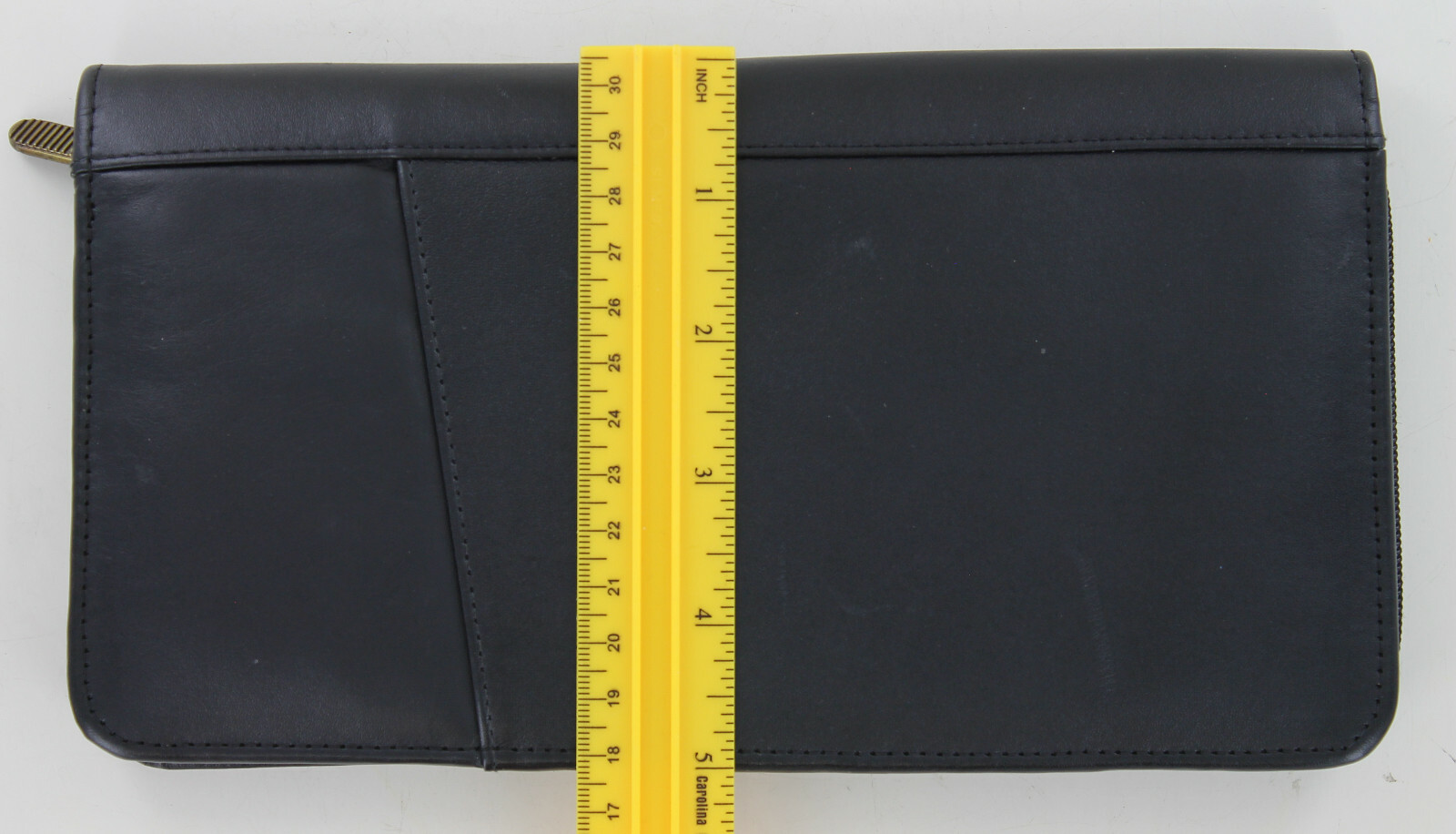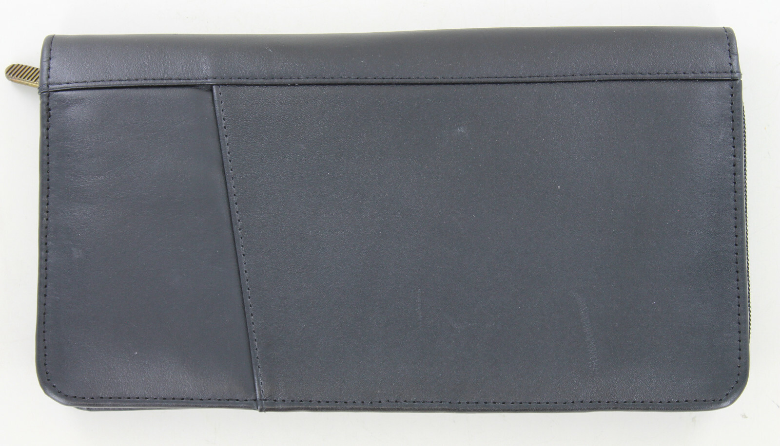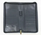 Passport Holder and Organizer Black Zipper closure ID & credit card slots Travel document pocket Bill holder Place for a pen - not included Pocket on outside Has a few minor marks from use