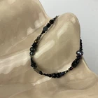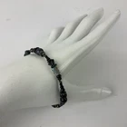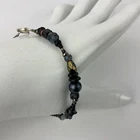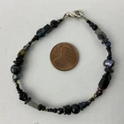 This beautiful beaded bracelet is a unique combination of dark colored semi-precious gemstones, genuine black pearls, faceted crystals, carved labrodorite, & cat's eye. Set with sterling silver facings and sterling lobster claw clasp. Marked & tested 925 sterling. Size: 7.5 Measurements: Length - 7.5". Condition : Good, pre-owned condition.