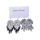 These beautiful black peony feather tassel earrings are the perfect addition to any bohemian or fashion-forward jewelry collection. The asymmetrical design with a hook closure and hollow drop style gives them a unique and dreamy look. The earrings are made of nickel-free zinc metal and feature a dream catcher theme, making them a perfect gift for any fashion-savvy friend or loved one. The earrings are sold by the brand DREAM and come with a seller warranty for added peace of mind. They are not antique or vintage, but they are sure to make a statement. These earrings are perfect for everyday wear or for special occasions. Add them to your collection today!