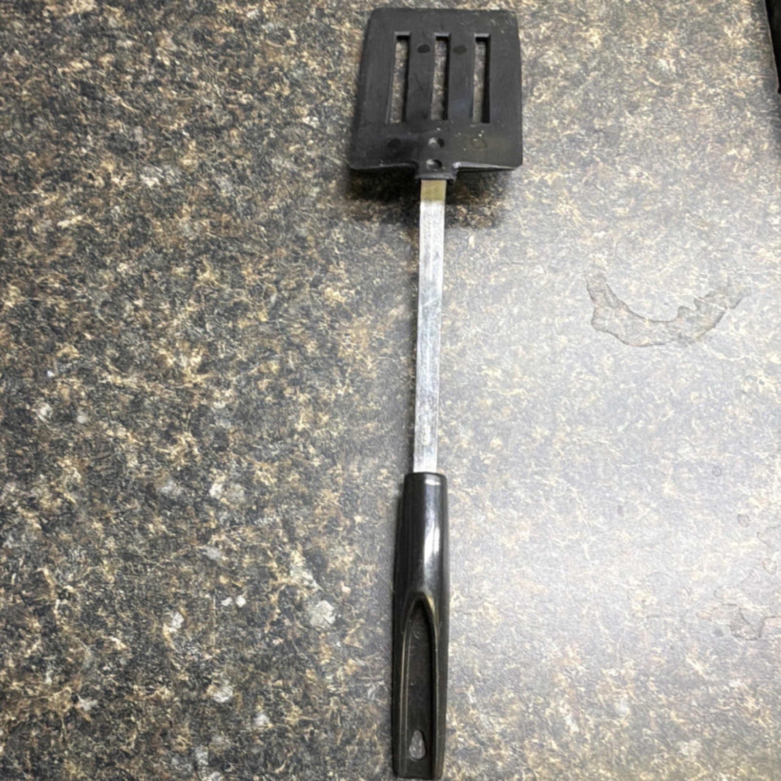 Black Plastic Handle Slotted Spatula Cooking Utensil Metal