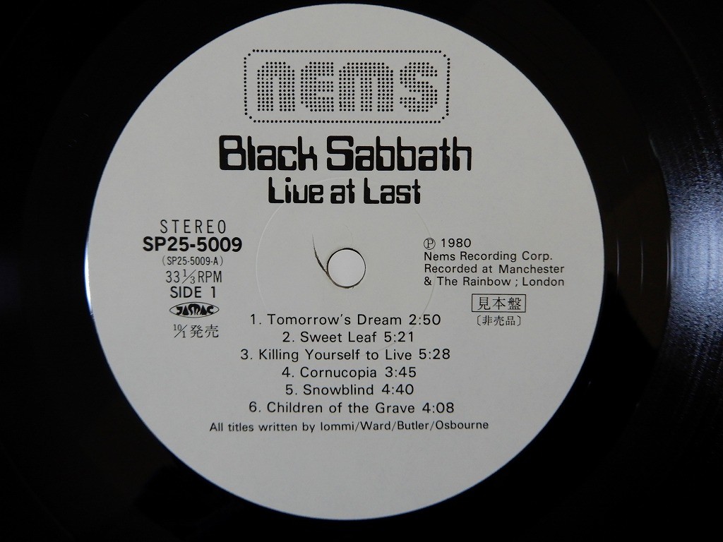 CATEGORY ROCK POP JAZZ SOUL/FUNK JAPANESE HOUSE/TECHNO LATIN BRAZIL OST HIPHOP TERESA TENG BLUES REGGAE CLASSICAL WORLD ARTIST Black Sabbath TITLE Black Sabbath Live At Last. Nems SP25-5009 Japan Promo VINYL LP OBI LABEL Nems FORMAT LP COVER E (Excellent) S (Stain) conerbump VINYL E+ (Excellent Plus) OBI STRIPE E (Excellent) OS (OBI Stain) COMMENTS The pictures in this page show actual item which you will receive. Accessories not shown in the photo are not included. Please note that shipping rates are for single LPs. Gatefold & Double albums count as 2LPs, 2CDs Triple albums count as 3LPs, 3CDs & Box Sets are counted per LP & CD. ▶ Grading Policy All gradings are visual and very strict. ▼ Record grading S (Sealed) Record is still sealed and has never been played. M- (Mint minus) Like new. The record does not have any visible light scratches or cracks. E+ (Excellent Plus) The record has hardly visible small scratches etc. The label may have some * In effect E+ means almost faultless. We think you can find records graded E+ quite satisfactory, unless you are a collector who is determined to own a brand new record. EX (Excellent) There are some light scratches and cracks on the record (which can be felt by touch). Sometimes these slight defects may influence sound. *Although some noise is audible in quieter sections of the record, such as fade-outs, and it is especially conspicuous between tracks, it does not have a profound influence on the whole record. The label may have discolorations or ring wear. EX- (Excellent Minus) It is worse than the above, but there are no needle jumps. There is some noise. The label may have discolorations or ring wear. VG+ (Very Good Plus) It is worse than the above. But,No Needle jumping. There is some noise. The label has discolorations or ring wear. VG (Very Good ) It is worse than the above. ▼ Cover grading S (Sealed) Record is still sealed and has never been played. M- (Mint minus) Like new.The Cover does not have any lines, folds, scratches, cracks, spots, or other similar folds. E+ (Excellent Plus) The Cover has small lines / folds / scratches / cracks / spots / ring wear, or other similar faults. E (Excellent) The Cover may have light lines, folds, scratches, cracks, spots, some writing, some tape or sticker (or traces of such) and ring wear. It may be slightly dirty. E- (Excellent minus) It is worse than the above, The Cover may have light lines, folds, scratches, cracks, spots, some writing, some tape or sticker (or traces of such) and ring wear. The Cover may be dirty. VG+ (Very Good Plus) It is worse than the above,The Cover has striking folds, scratches, cracks, spots, ring wear, some writing, scotch tape, or stickers. VG (Very Good) It is worse than the above. ▼ OBI grading S (Sealed) M- (Mint minus) E+ (Excellent Plus) E (Excellent) E- (Excellent minus) VG+ (Very Good Plus) VG (Very Good) - - - - ▼ Other Abbreviations W Writing ST Stickers, tape WD Water Damage S Stain M Mold C Corner cut P Punch hole D Drill hole SP Cover Split DJ promotion copy SF Same Flip ▼ OBI Abbreviations OW OBI Writing OST OBI Stickers, tape OWD OBI Water Damage OS OBI Stain OM OBI Mold OP OBI Split - - - - - - - - - - ▼ Degree of Warping Vinyl Condition: 「Warp 1」 Vinyl Condition: 「Warp 2」 Vinyl Condition: 「Warp 3」 ▼ NOTICE All gradings are visual. Please note that we only perform lightly cleaning. An abbreviation of the country of origin is listed next to/below the label. Warps, heat damage, or chemical changes due to polyurethane sleeves and vinyl chloride records, and manufacturing defects, etc... are separately described in the comment column. We will be happy to give you more information for any special record if you have further questions. ▶ International Buyers - Please Note: Import duties, taxes and charges are not included in the item price or shipping charges. These charges are the buyer's responsibility. Please check with your country's customs office to determine what these additional costs will be prior to bidding/buying. These charges are normally collected by the delivering freight(shipping) company or when you pick the item up - do not confuse them for additional shipping charges. We do not mark merchandise values below value or mark items as"gifts"- US and International government regulations prohibit such behavior. IMPOTANT :As of Aug 29, 2025, the U.S. ended the “De Minimis” exemption — even low-value orders may now incur customs duties/taxes. ▶ Payment The item will be shipped within 3 business days after the payment is received. The reserve period is up to 14 days. If you demand for combining multiple vinyl records in one shipping, please make payment for all of items at once. We would appreciate it if you could add the records you wish to purchase to your cart, then click "Request combined shipping." So that we can send you a revised invoice for combining shipping, then please make the payment. ▶ Shipping Information All of the items will be shipped by from Japan. You can check the single or combined international shipping cost from the rates table shown below. Please wait for the invoice of total values which will be issued after the auction. Due to postal regulations aimed at preventing the spread virus infection, postal delivery has been delayed worldwide. Please note that the postal delivery may take more time than eBay expectation to arrive. Please register your phone number with eBay so that your carrier can contact you. When reporting about damage to the cover jacket or vinyl record after you received, please include a photo of the condition of the parcel that was mailed to you. SHIPPING RATES LP We ship by ASIA DHL $16 each add. LP $4.00 Gatefold LP/2LP $6.00 7"/CD $2.00 USA / CANADA / NORTH AMERICA DHL $18 each add. LP $5.00 Gatefold LP/2LP $7.50 7"/CD $2.00 EUROPE / OCEANIA DHL $18 each add. LP $5.00 Gatefold LP/2LP $7.50 7"/CD $2.00 SOUTH AMERICA / AFRICA / MIDDLE EAST DHL $28 each add. LP $6.00 Gat