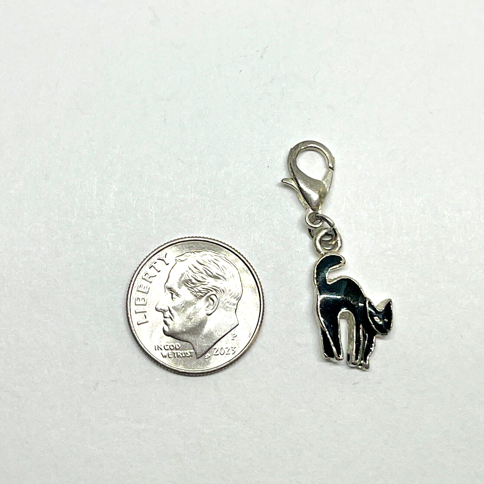 VINTAGE BLACK SCAREDY CAT DANGLE CHARM Fits Pandora and European snake chain bracelets as well as thicker cords and necklace chains. Add-on to purses, zippers, or anywhere you'd like some extra pizazz. CHARM DETAILS: Charm Metal: Silver Plated Finish Color: Black Size: Compare photo with dime Available without bead attached upon request Snake bracelet not included SHIPPING: Shipping within the USA is free. Please refer to the estimated delivery date during checkout. Handling time is one business day.