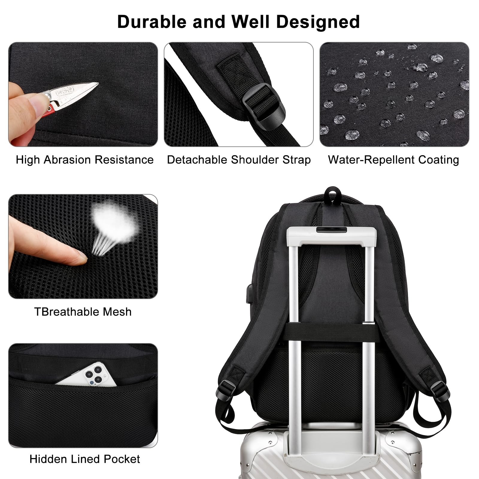 Product Description: Features for school Laptop Backpack: Daily travel and study work: The Backpack for College is a stylish and functional accessory designed specifically for men, teens boys, high school students, and college-goers. This sleek black backpack offers ample storage space to safely carry all your essentials while on the go. With a dedicated compartment for a 17.3-inch laptop, this backpack ensures that your valuable device stays protected from scratches and bumps. Device requirement: Featuring a USB charging port, this backpack allows you to conveniently charge your electronic devices while traveling or attending classes. Simply connect your power bank to the internal charging cable and you're ready to charge your smartphone, tablet, or other gadgets on the move. No more worrying about running out of battery! Crafted using durable materials: This backpack is built to last. The adjustable shoulder straps offer a comfortable fit, ensuring that you can carry your belongings without straining your shoulders or back. The backpack also features multiple pockets and compartments, providing organized storage for your textbooks, notebooks, pens, water bottles, and other essentials. Whether you're heading to class, library, gym, or traveling, this versatile backpack is the perfect companion. Its sleek design and black color make it suitable for any occasion or outfit. Invest in the Backpack for College and experience convenience, style, and durability all in one! 【VERSATILE AND SPACIOUS】: The School Backpack is designed for students, offering ample storage space for textbooks, notebooks, and other school supplies. Its spacious compartments and pockets ensure everything stays organized and easily accessible. 【SECURE LAPTOP STORAGE】: With a dedicated compartment, this backpack provides secure storage for a 17.3-inch laptop. Your device will be protected during transportation, keeping it safe from bumps and scratches. 【TRAVEL-FRIENDLY DESIGN】: Whether you're going on a weekend getaway or embarking on an outdoor adventure, the School Backpack is your perfect travel companion. Its water-resistant material keeps your belongings dry, while the anti-theft pocket ensures your valuables stay safe and secure. 【CONVENIENT AND STYLISH】: Designed for everyday use, this backpack combines practicality with style. The USB charging port allows you to stay connected on the go, while the durable construction guarantees long-lasting performance. Upgrade your backpack experience with the School Backpack. 【COMFORTABLE AND ERGONOMIC】: The School Backpack features a comfortable and ergonomic design, ensuring a hassle-free experience even during long hours of wear. Its adjustable straps and breathable back padding provide extra comfort and support. Enjoy the comfort, durability, and practicality of the School Backpack in your daily life.
