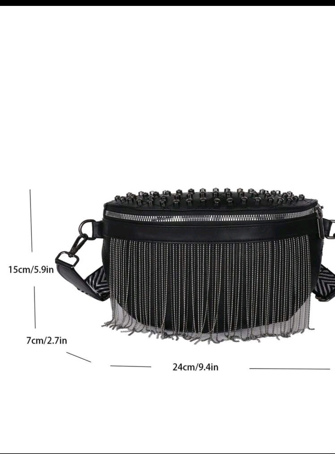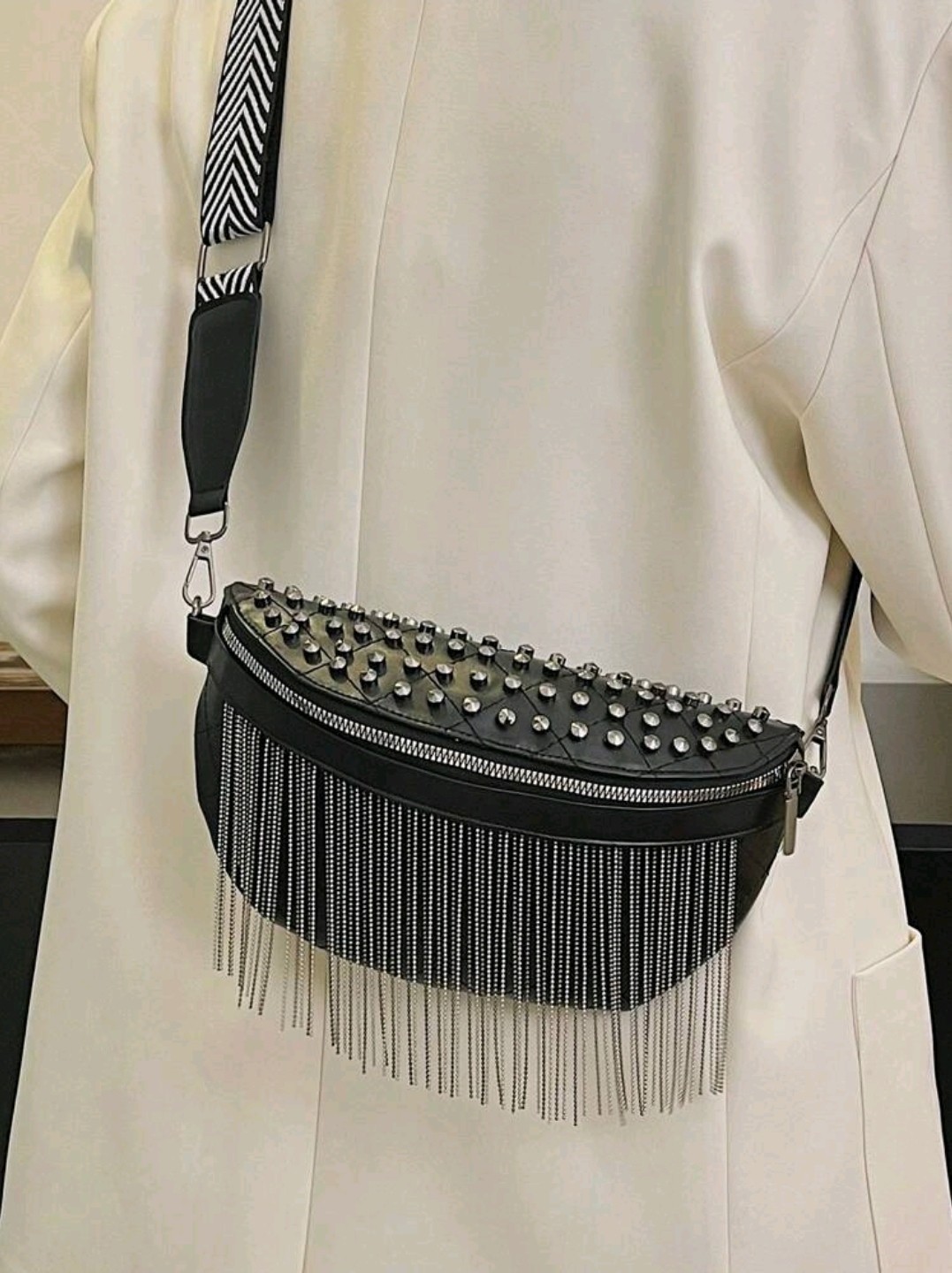 Black Studded leather Fringe Crossbody Bag – Edgy & Trendy Fashion Accessory Upgrade your style with this bold black crossbody bag featuring studded embellishments, silver fringe details, and a chic chevron strap. Perfect for casual and statement outfits. Ideal for street fashion lovers. Black crossbody bag, studded bag, fringe bag, fashion accessories, edgy style, street fashion, trendy handbag, statement bag, women’s bag #BlackBag #FringeBag #StuddedBag #FashionAccessories #StreetStyle #TrendyBag #EdgyLook #StatementFashion #CrossbodyBag