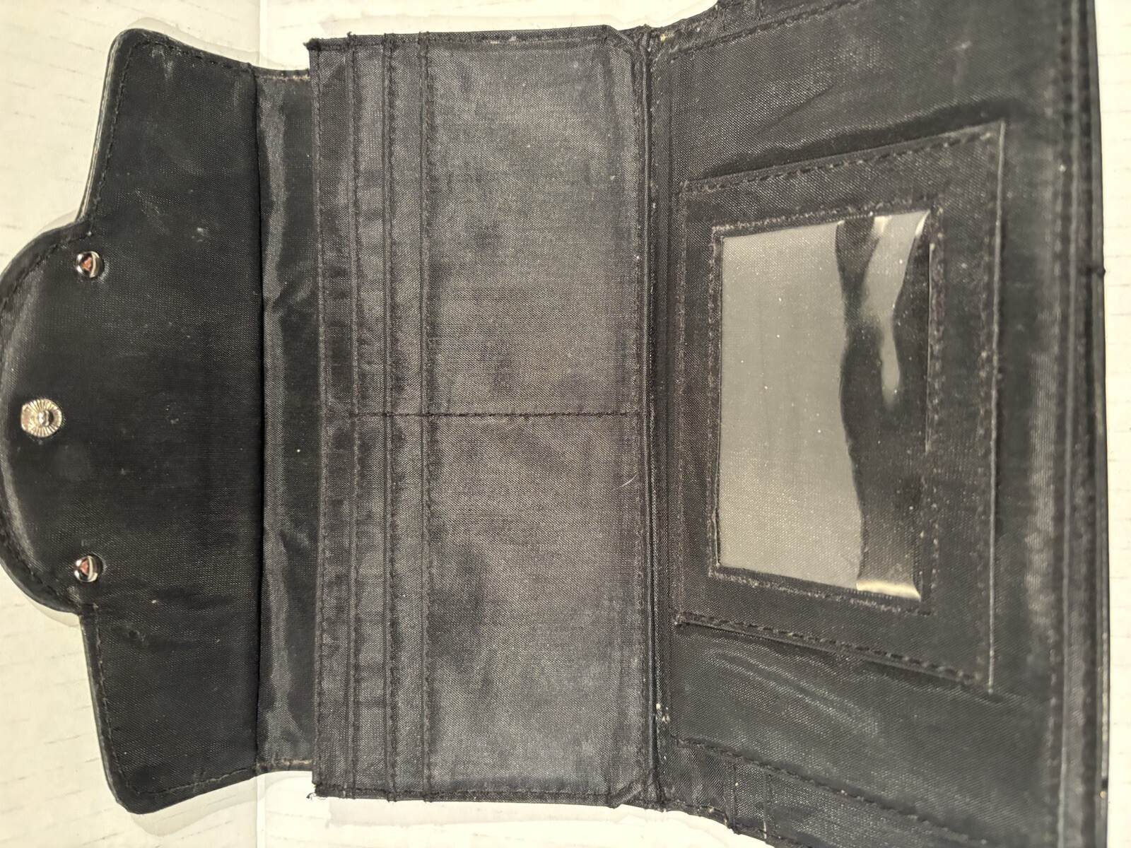 This black bifold wallet for women is a stylish addition to any outfit. The wallet features a chain link studded snap and zipper card holders, providing ample space for credit cards, checkbooks, and folding cash. The wallet is made of high-quality ensuring durability and longevity. With a solid pattern and biker theme, this wallet is perfect for women who love to ride motorcycles or simply appreciate the edgy style that comes with it. The wallet is 7.5" in length and 3.75" in width, making it the ideal size for everyday use. Whether you're running errands or hitting the open road, this wallet is a must-have accessory that will keep your belongings organized and secure. Has some wear! Please see pics for exact condition! Check out my other listings too as have a variety and do combined shipping! New listings everyday! FAST SHIPPING!