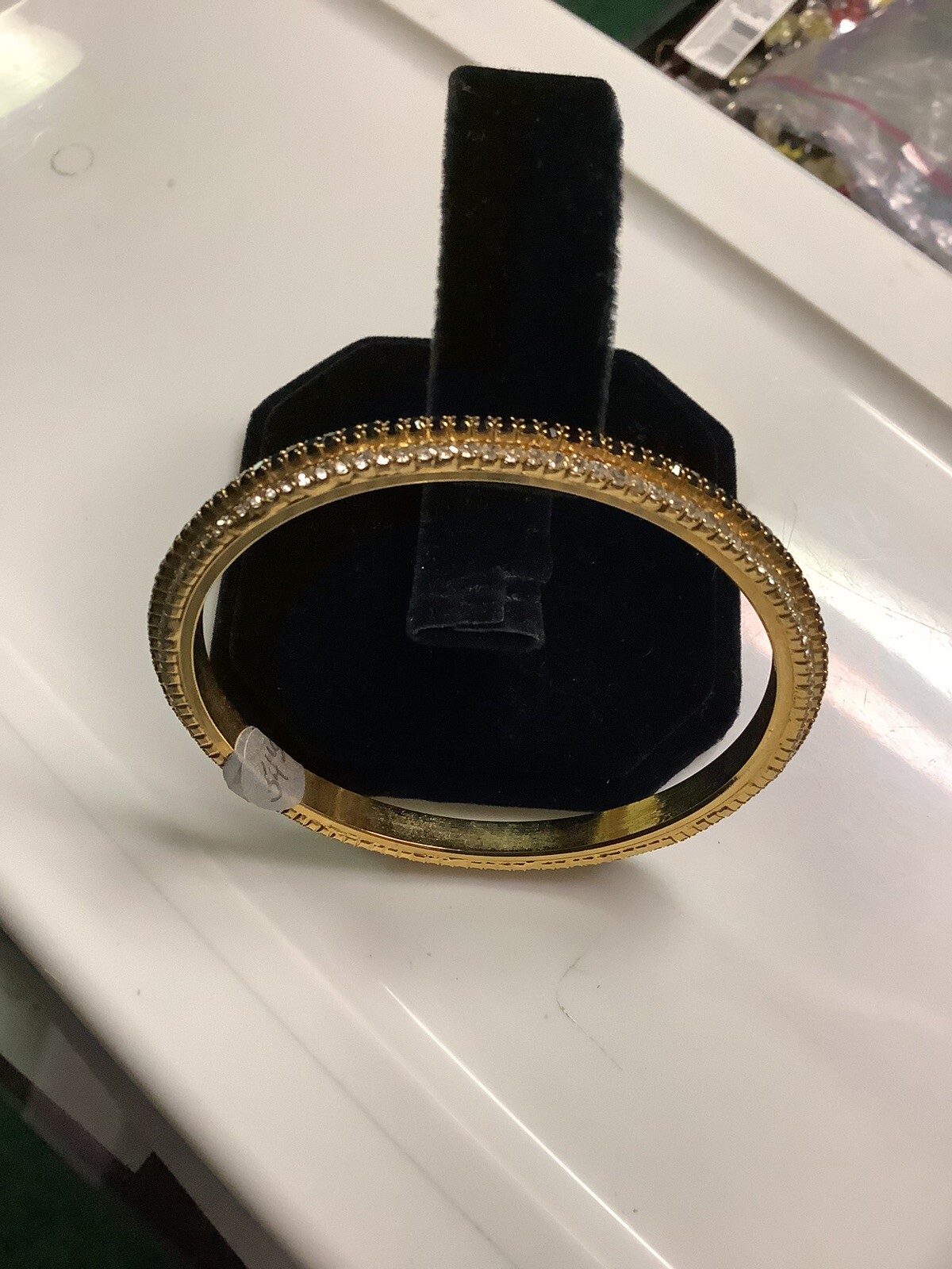 Heavy golden bangle bracelet studded with 3 row black and white CZ Diameter of 2 7/8 inch Width 6 MM Well kept bracelet with multi sparkles This one to love