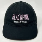 Blackpink World Tour Dad Hat Baseball Cap South Korean K-Pop Girl Group Band Strapback Black Six Panel Will be shipped in a box. CONDITION: In very good used condition. No flaws noticed. Has been cleaned and sanitized. See photos.