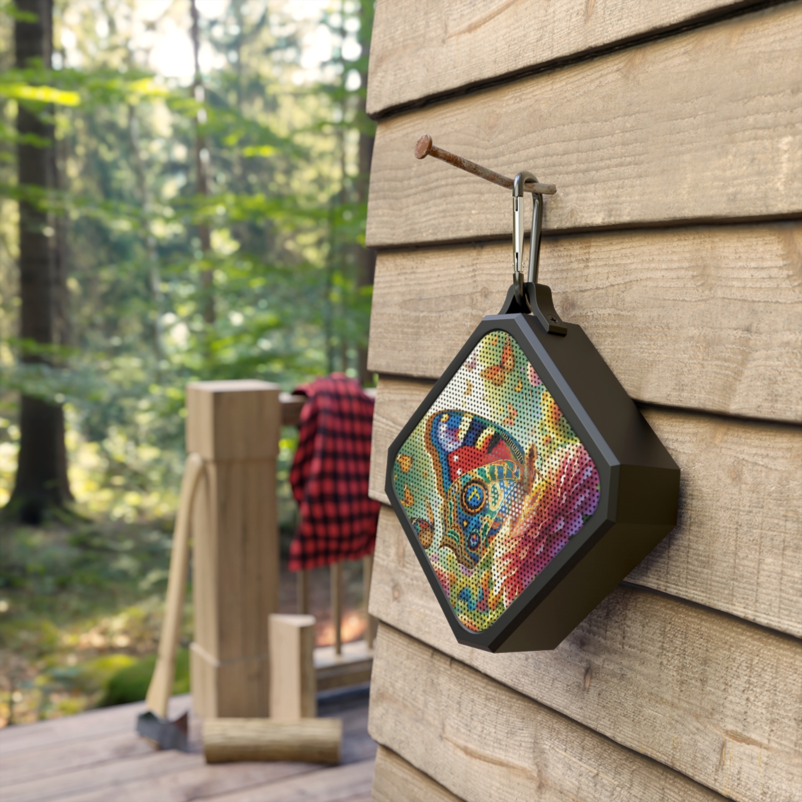 Add your soundtrack to any adventure with the Blackwater Bluetooth outdoor speakers. This IPX6-certified waterproof speaker takes any hiking trip head-on. Its compact size along with the included carabiner clip & micro USB charging cable, make it the ideal companion for listening to your favorite tunes while exploring. Bluetooth working range - 33 ft, 2 hours of music at max volume. Details: ✓ compact size; ✓ built-in microphone and music controls; ✓ carabiner clip included; ✓ IPX6 water resistant. NB! Small text and graphics may not render properly due to the holes in the speaker grill.