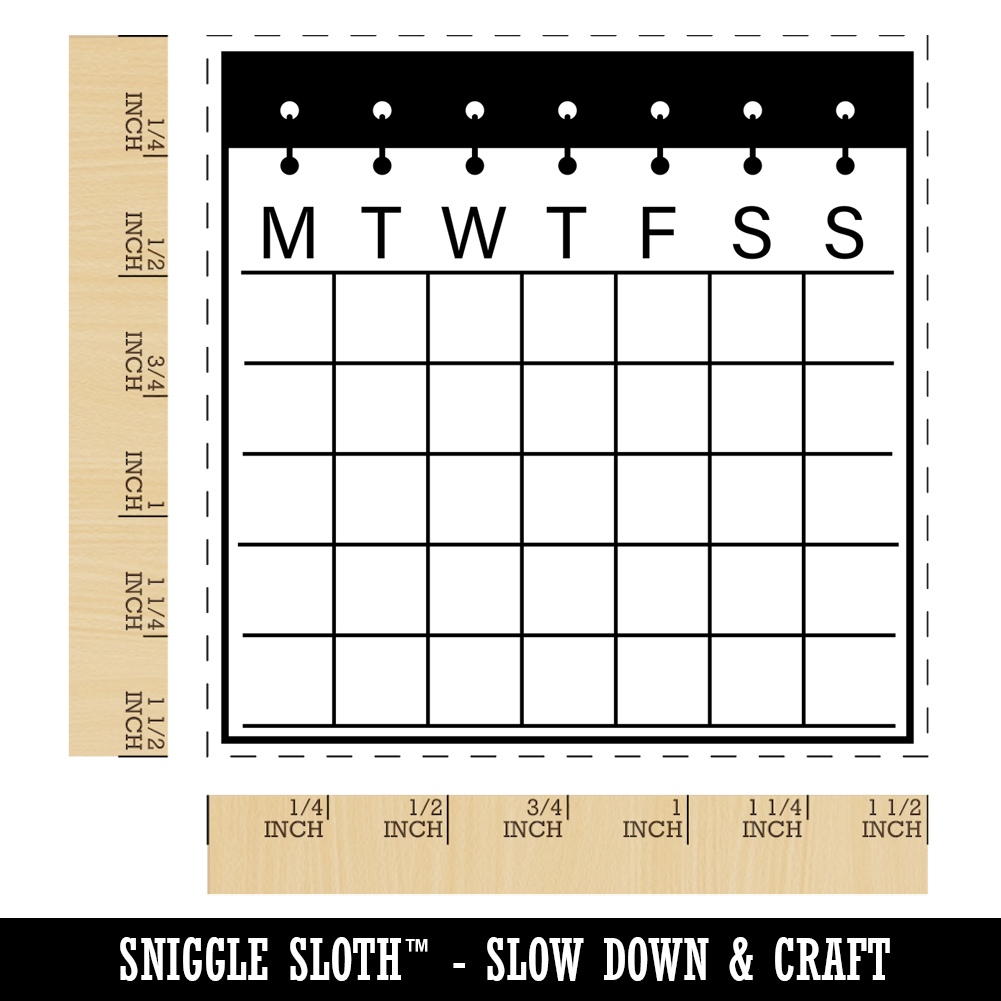 Blank Calendar with Notebook Rings Monday Start Self-Inking Rubber Stamp Stamper