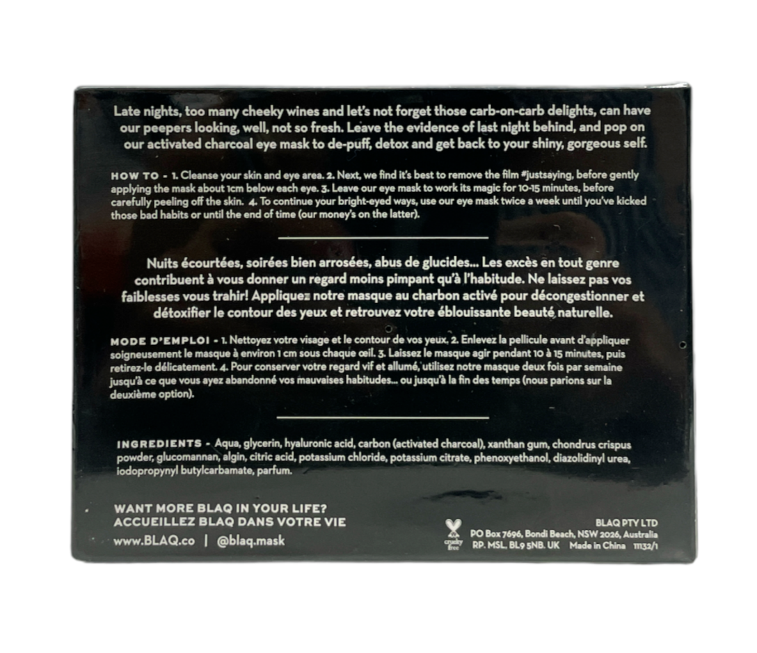 Blaq Eye Mask + Hyaluronic Acid (5 Masks) New Sealed!! As Seen In Pictures