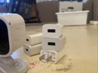 This is a bundle of Blink Mini x5 cameras, a Blink Doorbell Cam, and a Sync Module. The cameras have a maximum resolution of 1080p and are suitable for both indoor and outdoor use. They are white in color and connect wirelessly via Wi-Fi. The cameras are compatible with Amazon Alexa for smart home integration and were manufactured in 2020. They utilize surveillance technology for IP/Network and support color day and black & white night modes. Missing one camera usb cable.