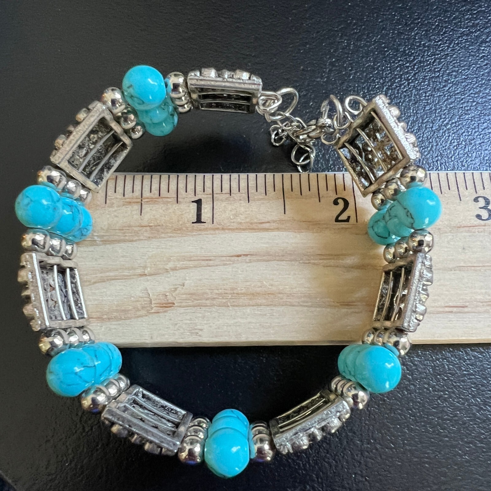 Bracelet Blue Beaded Stations Open Silver Tone Metalwork Good pre-owned condition, please see all photos. I am happy to combine shipping on purchases, each additional jewelry item or patch ship for just .99. Orders of more than four items are eligible for an additional shipping discount. The checkout system should automatically combine shipping when you pay for all your items at one time, if this does not happen please let me know and I will send you a combined invoice. Jewelry may contain small components such as clasps or beads. These items may pose a choking hazard, especially for children. This jewelry is not suitable for children under 3 years. Thank you for visiting my store.