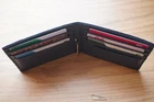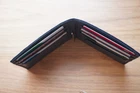 Wallet arrived in mint condition and well packaged. Exactly as described. Looks like it’s made well too. Nice looking and no flaws. Free shipping a plus. No issues with entire transaction.