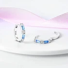 Blue Crystal Earrings Minimal Earrings 925 Sterling Silver Hoop Earrings