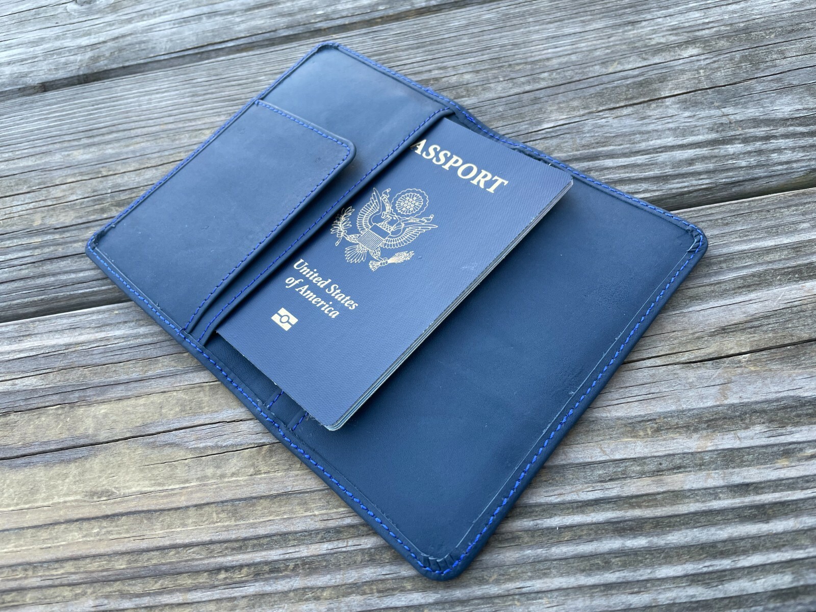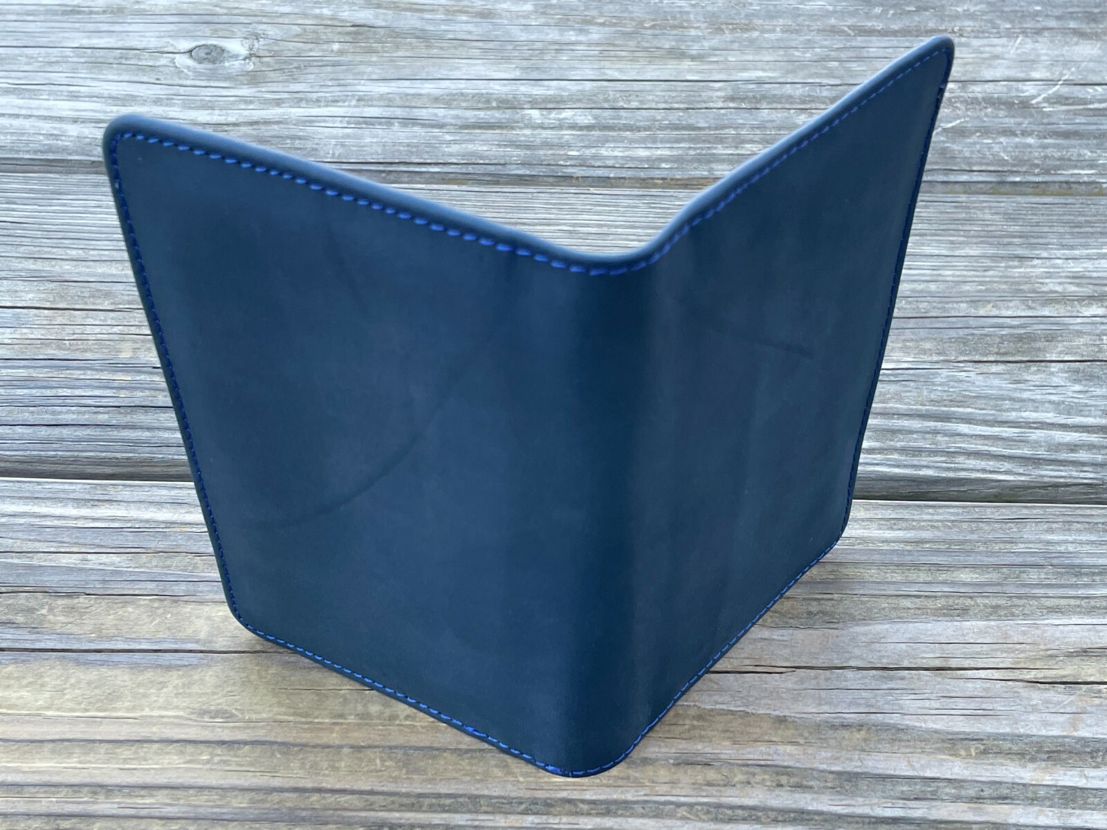 Passport Holder Blue Genuine Leather Bo Fold Card Holder Travel Wallet Handmade New Handmade Color: Blue Genuine Leather Size: 6 X 4 inches (closed) 6 X 8 inches (opened) Made in Pakistan Brand New. never used.