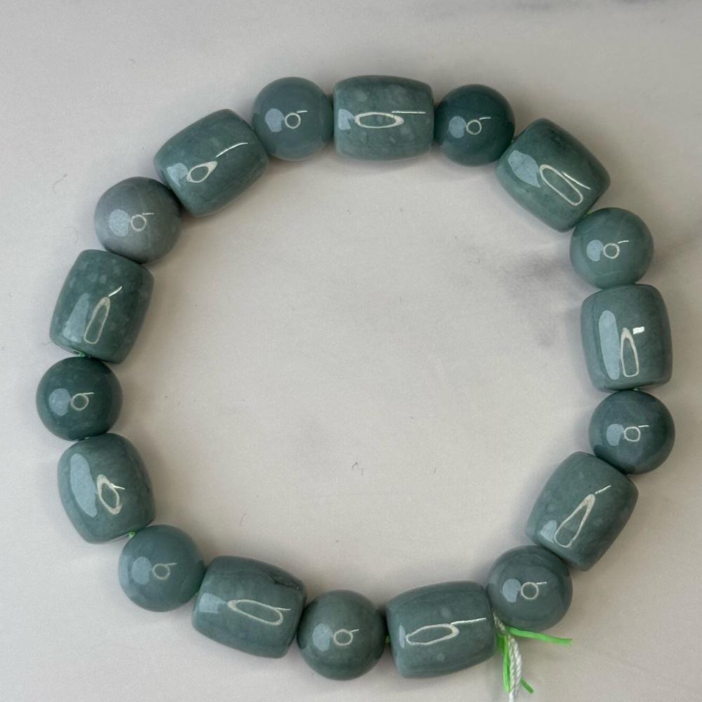 Elegant blue water jaded beaded bracelet. Bead size 9.8-10mm